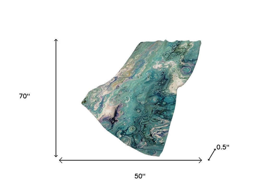 50" X 70" Teal And Ivory Abstract Polyester Woven Plush Throw Blanket