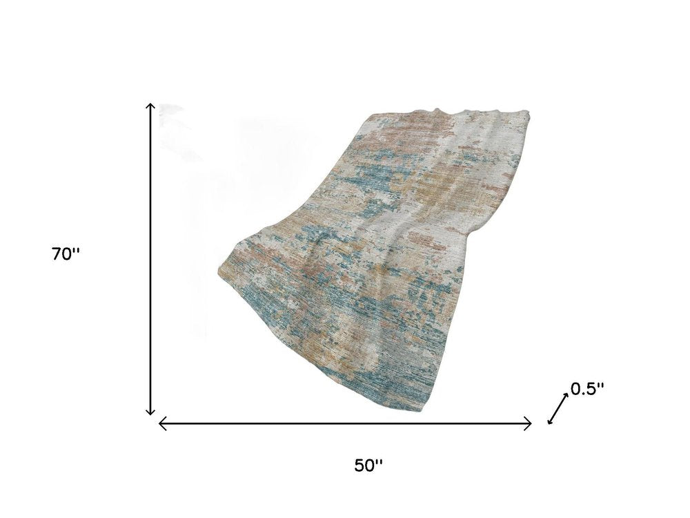 50" X 70" Teal Beige And Ivory Abstract Polyester Woven Plush Throw Blanket