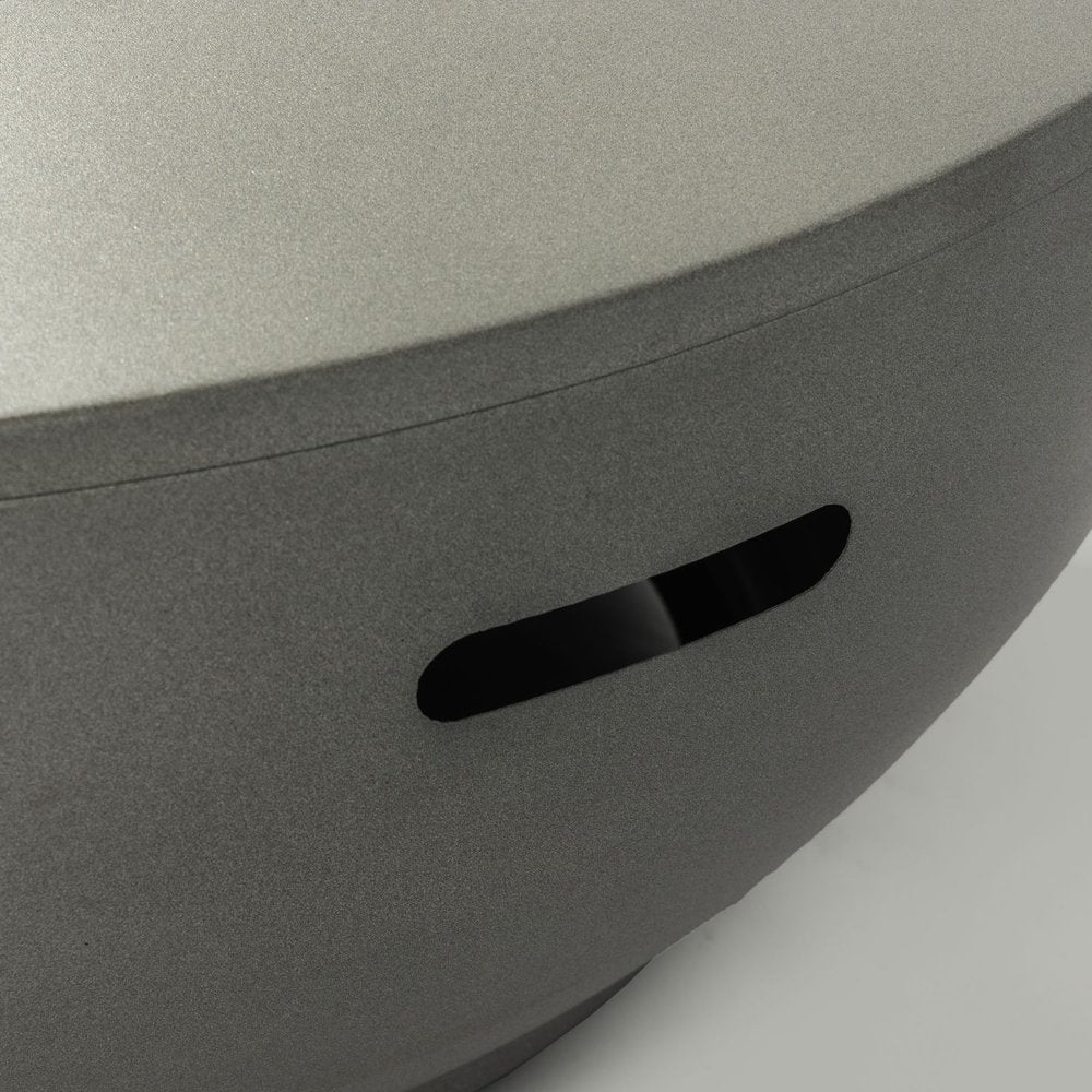If you're looking for an outdoor place to gather that's both functional and stylish, look no further than our 50000 btu 36-inch gray steel propane round fire pit table with cover. This round fire pit table is extremely versatile. You can keep warm white keeping your items handy to entertain guests. This fire feature is resistant to heat and the elements because of its sturdy steel construction. Save time chopping firewood, this propane burning fire feature is simple and easy to use. The flame on this unit is adjustable, allowing you to change the height and temperature of flames whenever you like. Everyone loves a cozy firepit, but the inevitable flying sparks are uncomfortable and dangerous. Fortunately, the spark screen feature of this fire pit has you covered. Make your backyard the ultimate gathering spot. 15.30-inch h x 36.00-inch w x 36.00-inch d.