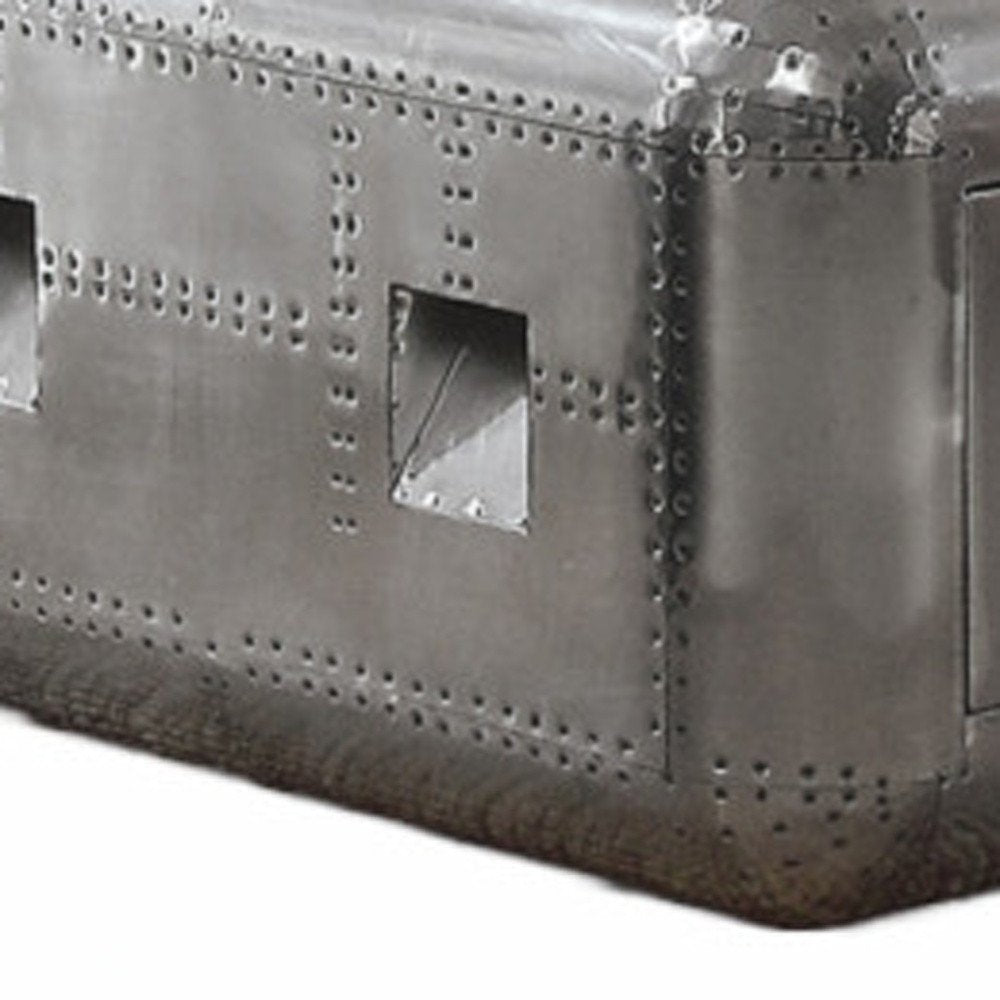 52" Silver Aluminum Solid Coffee Table With Drawer