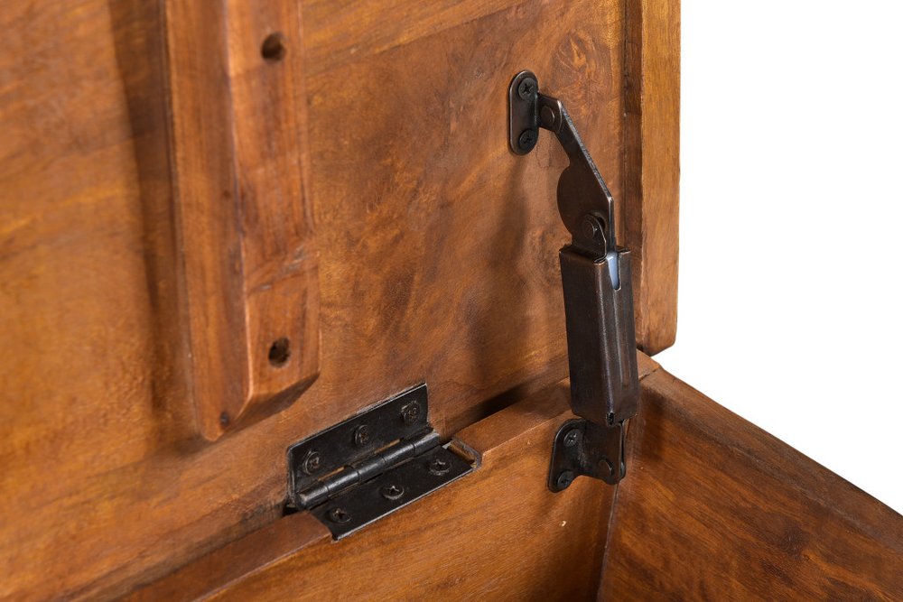 Stylish and super sturdy, the 54-inch black solid wood distressed lift top solid coffee table is an amazingly good looking coffee table that will compliment your living room. This table is made from solid wood in a black color throughout the base and top. Complete with a purposefully distressed finish, this table has an aged, vintage, and rustic feel. This trunk table provides hidden storage that is great for blankets, pillows, and small accessories. This classic rectangular table will be a great accent in any room it has an attractive design that will definitely breathe some fresh air into your interior. 18-inch h x 54-inch w x 16-inch d.