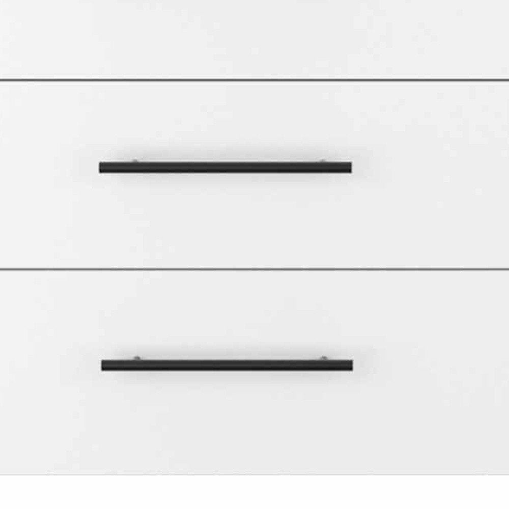 Enhance your room into a visually delightful and highly functional space with this 59-inch white six drawer double dresser. Designed for you to stand in front of and get ready, this horizontal double dresser has a convenient and wide top area for your getting ready needs and supplies. Loaded with capacity, this piece is equipped with six easy open drawers for practical and good looking clothing storage. Its a high quality piece, made from high grade manufactured wood. The white coloration of this piece is neutral and will blend easily with most any decor. 31.7-inch H x 59-inch W x 19-inch D