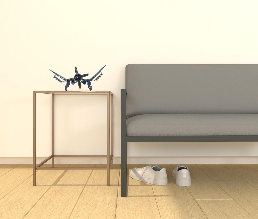 A beautiful replica of the iconic WWII American carrier-based airplane, the c1944 F4U Corsair Sculpture is handmade out of metal and accurately detailed. It comes with remarkable details such as landing wheels, a cockpit, and a propeller and is painted with authentic WWII blue paint and symbols. With a scale of 1:31, it is a sought-after piece for aviation and WWII enthusiasts. 6" x 14" x 13"