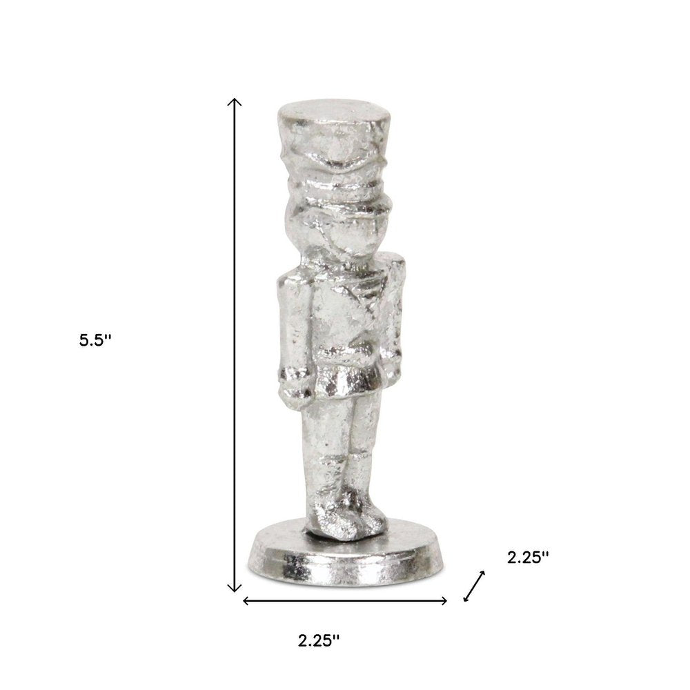 6" Silver Cast Iron Christmas Nutcracker Hand Painted Figurine