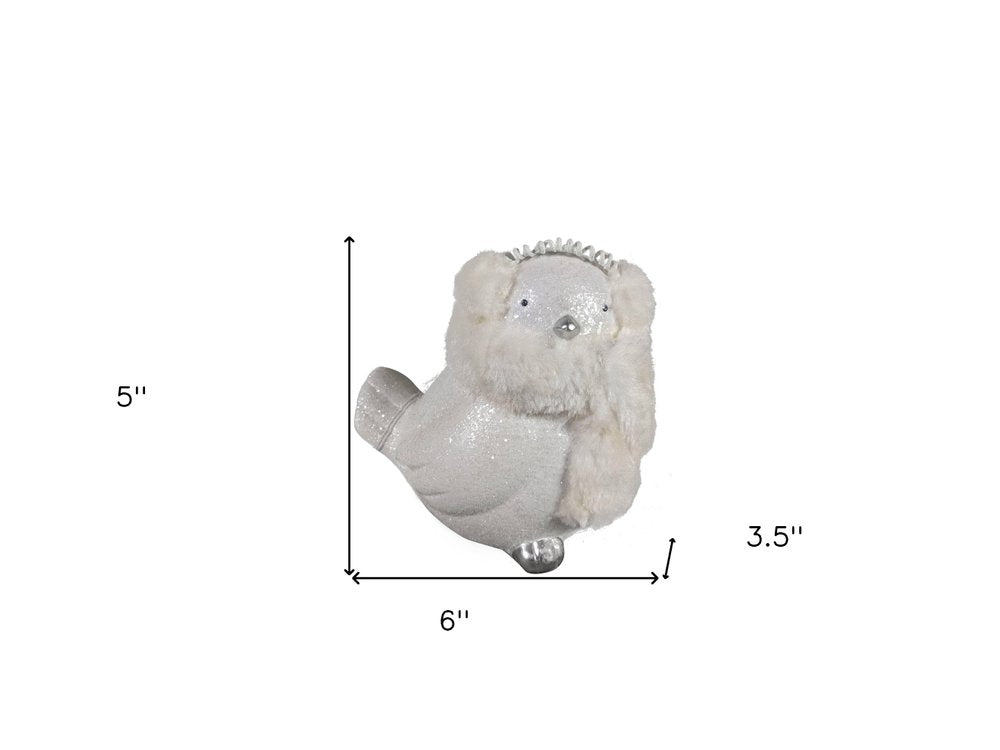 6" White And Silver Ceramic And Fabric Bird Christmas Figurine