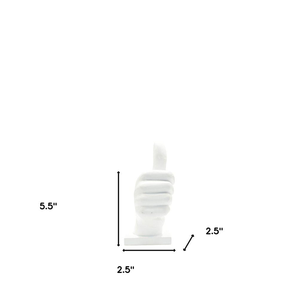 Add an air of fashion to your room and rejuvenate the space with this 6-inch white resin hand tabletop sculpture. Great to use on its own or mix with other decorations for the perfect look. Crafted through machine-made techniques, this distinctive piece showcases a hand design that symbolizes connection and creativity. Its transitional style seamlessly blends with various decor themes, making it a versatile addition to your home. Made from durable resin, this sculpture not only adds elegance but also ensures long-lasting beauty. 5.5-inch h x 2.5-inch w x 2.5-inch d.