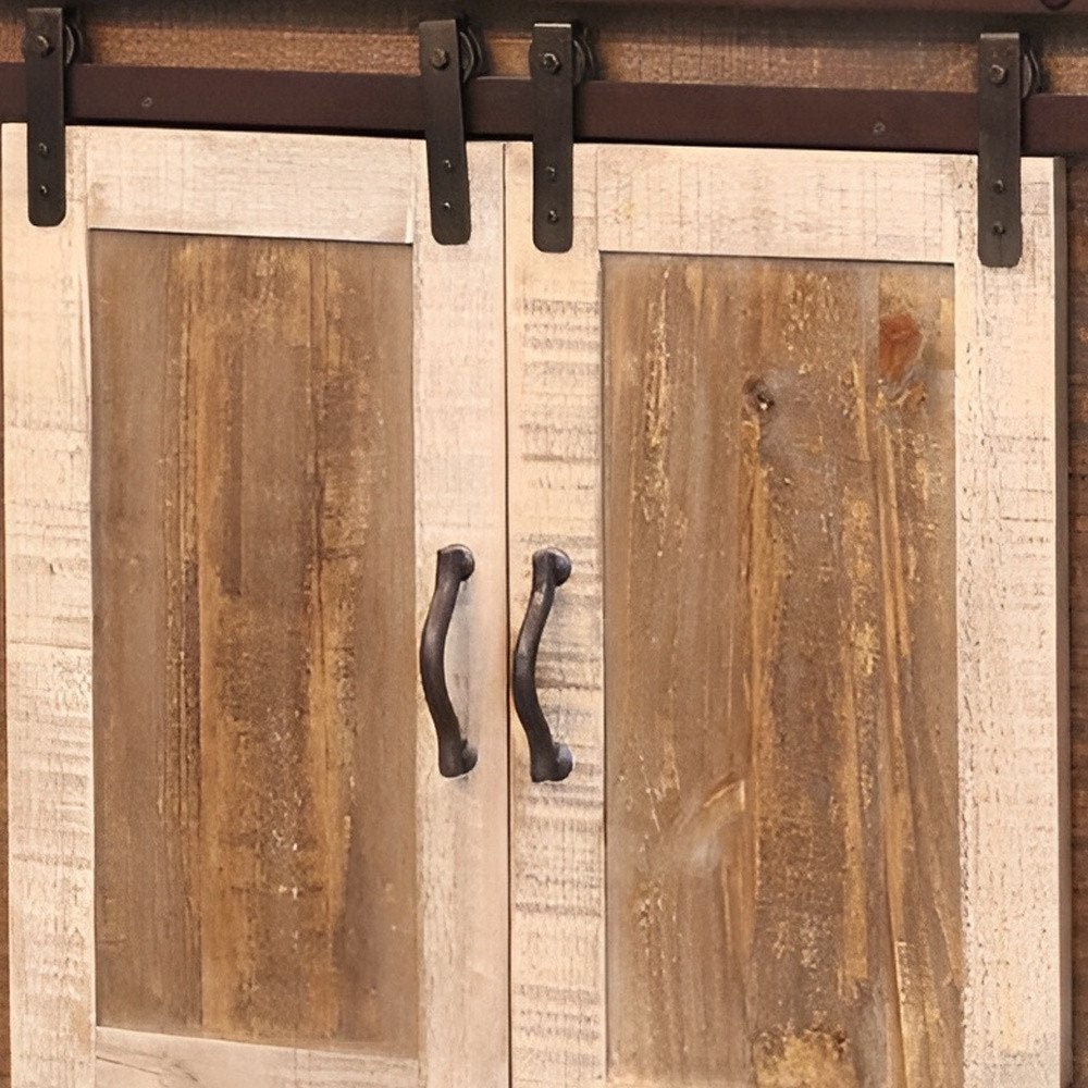 60" Brown Solid Wood Cabinet Enclosed Storage Distressed TV Stand
