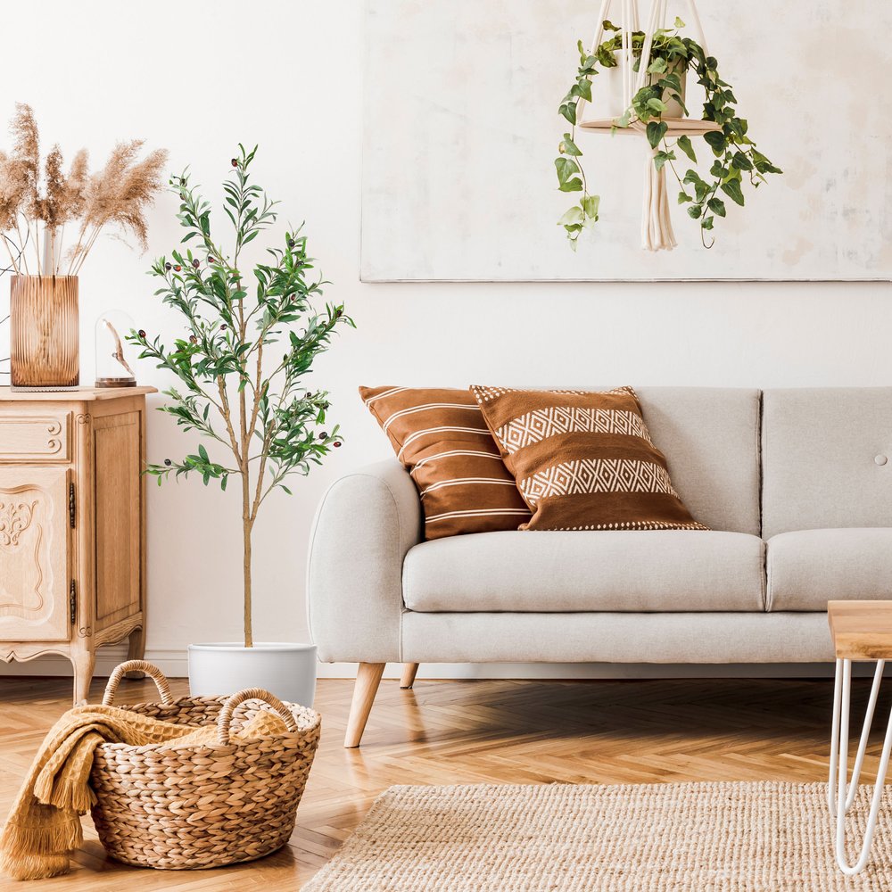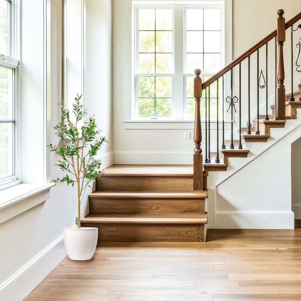 The 60-inch green olive artificial tree in a black pot is a stunning addition to any interior space. This floor-standing piece features a lifelike olive tree design that brings a touch of nature indoors without the maintenance. The vibrant green foliage and realistic looking olives offer a refreshing pop of color and style, enhancing the aesthetic of your home. The included black resin pot adds a modern touch that complements various decor styles, making it perfect for home or office. Elevate your living space effortlessly with this eye-catching, maintenance-free decor piece that breathes life into any room. 60.00-inch h x 21.00-inch w x 21.00-inch d.