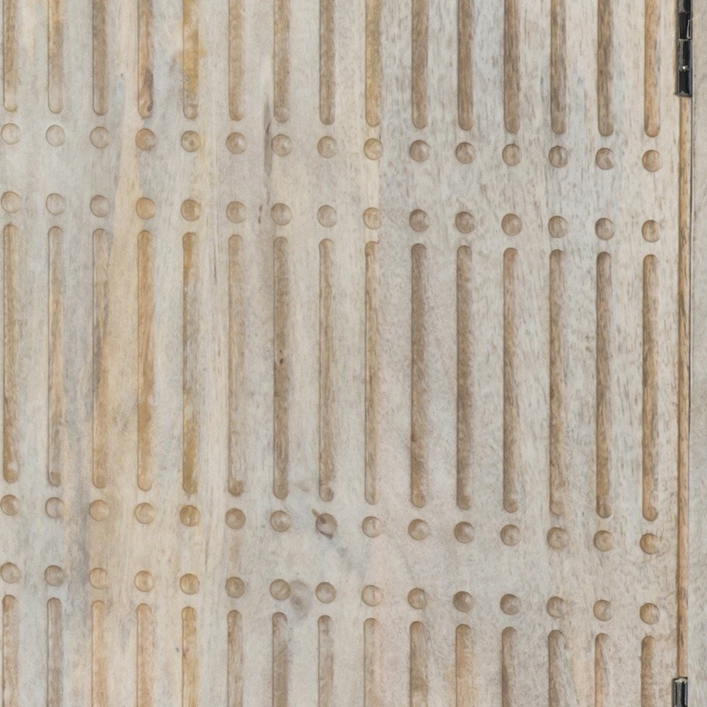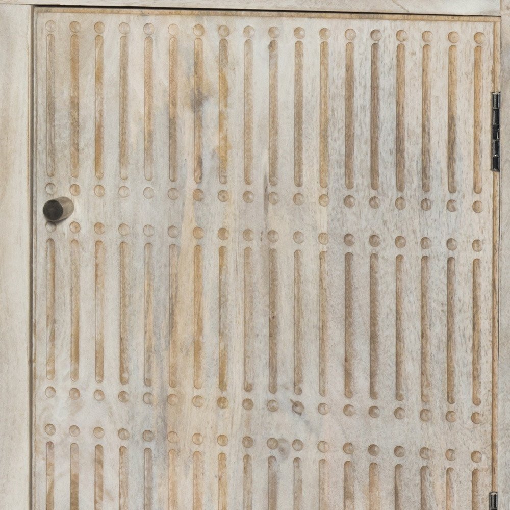 60" Ivory Carved Geometric Distressed Solid Wood Enclosed and Open Storage TV Stand