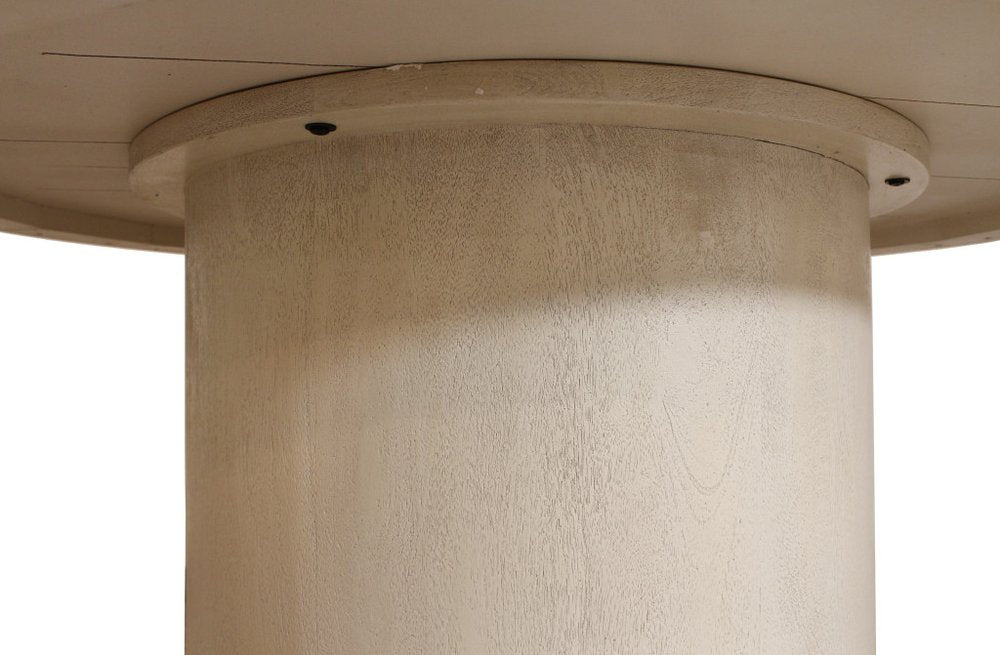 Add handsome, fashionable design to your dining space with this 60-inch natural and brown rounded solid wood pedestal base dining table. You will add an updated and fresh look to your dining space with this natural solid wood table. Offering a nice color combination, the top of this solid wood table is natural, while the base compliments it nicely in brown. The two-tone finish makes it even more attractive and fashionable. The purposefully distressed finish gives this table an authentically rustic feel. A beautiful pedestal base adds some dimension and elegance to your dining. This dining table seats 6 people comfortably. Complete your kitchen or dining room with this well made and stylish table. This eye-catching dining table is ready for you to enjoy breakfast for one or entertain your guests. 30-inch h x 60-inch w x 60-inch d