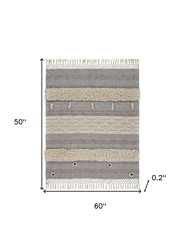 60" X 50" Gray Woven Cotton Striped Throw Blanket with Fringe