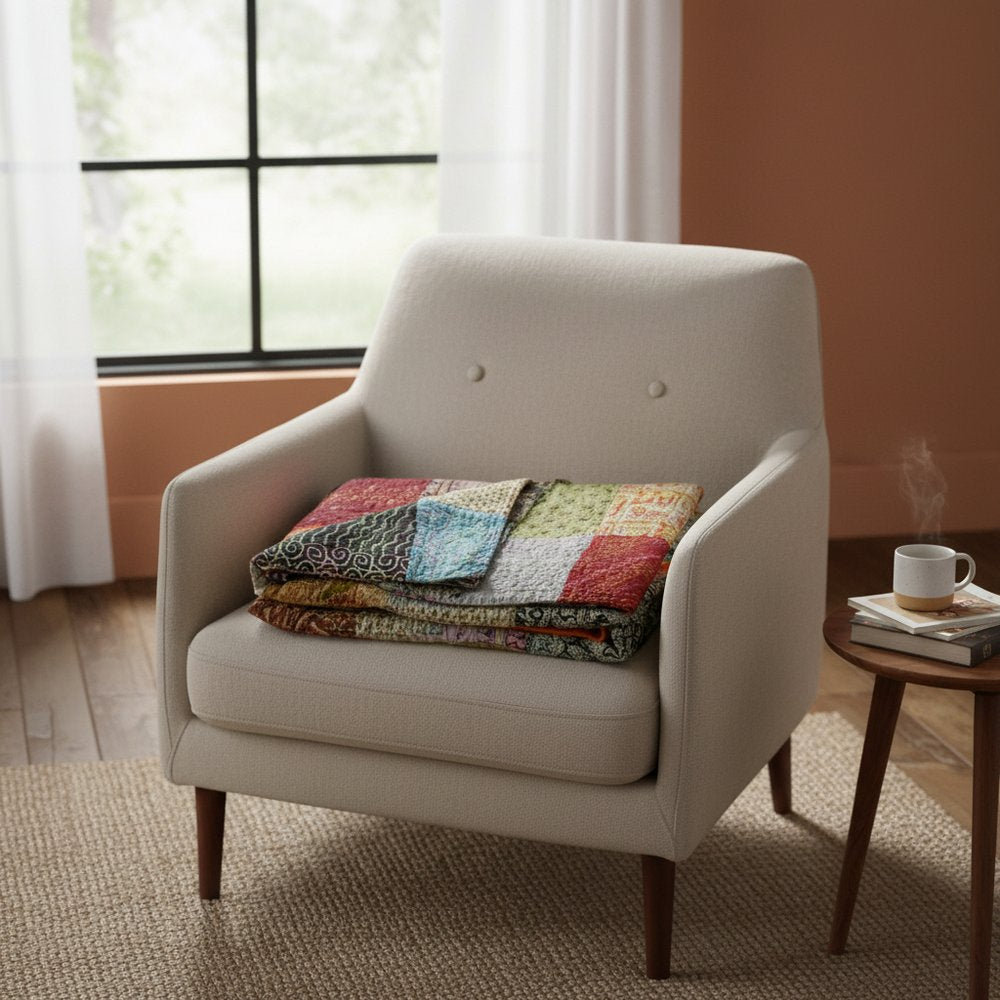 This versatile 60-inch x 90-inch blue black and brown kantha cotton patchwork throw blanket with embroidery is a charming accent that brings comfort and charm, wherever it's placed. Featuring beautiful embroidery, this embellished throw is of the highest quality and design. Made from cotton this blanket will make a great addition to any room it's added to. Add extra texture to your decor and turn your room into an inviting space. This cozy throw blanket makes the perfect add-on to movie nights and lazy afternoons. 60-inch H x 90-inch W x 0.1-inch D