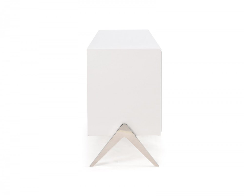 Enhance your room into a visually delightful and highly functional space with this 61" white manufactured wood four drawer double dresser. Designed for you to stand in front of and get ready, this horizontal double dresser has a convenient and wide top area for your getting ready needs and supplies. Equipped with four easy open drawers for practical and good looking clothing storage. Its a high quality piece, made from high grade manufactured wood. The white coloration of this piece is neutral and will blend easily with most any decor. 33" H x 61" W x 18" D