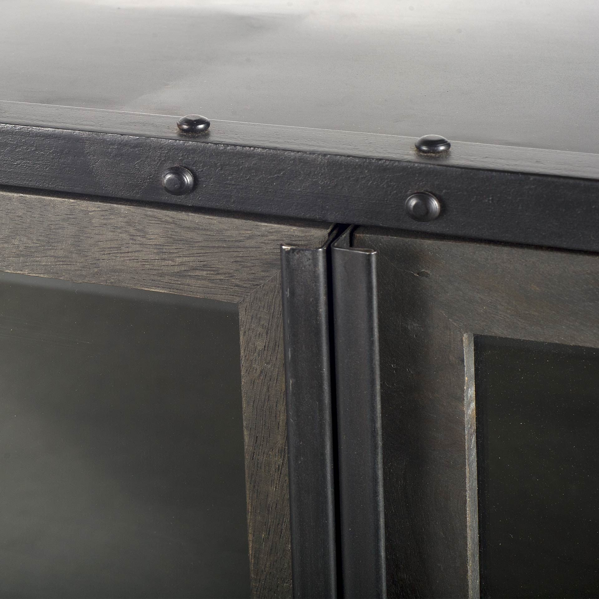 62" Dark Brown Iron Two Drawer Sideboard with Four Glass Doors