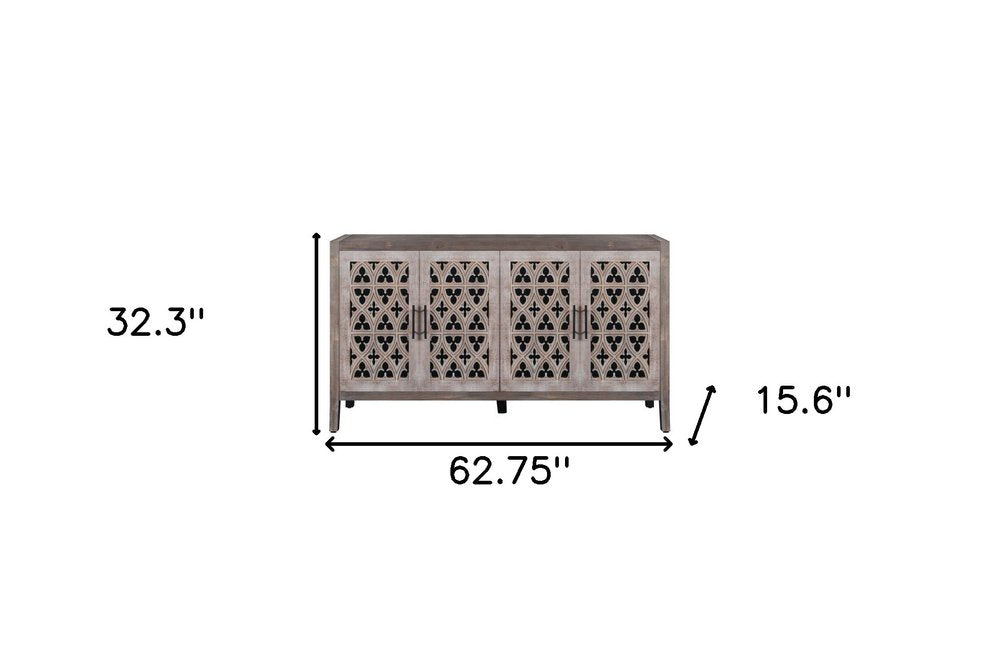 63" Brown Distressed Carved Scrollwork Sideboard with Four Doors