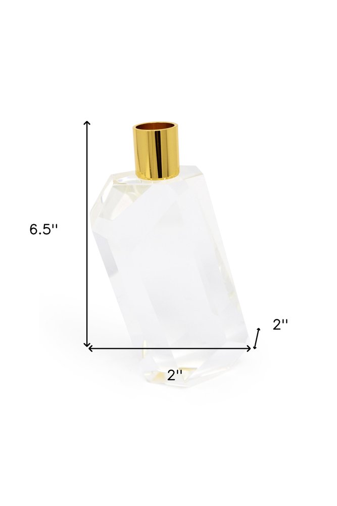 7" Clear And Gold Geo Faceted Crystal Tabletop Taper Candlestick