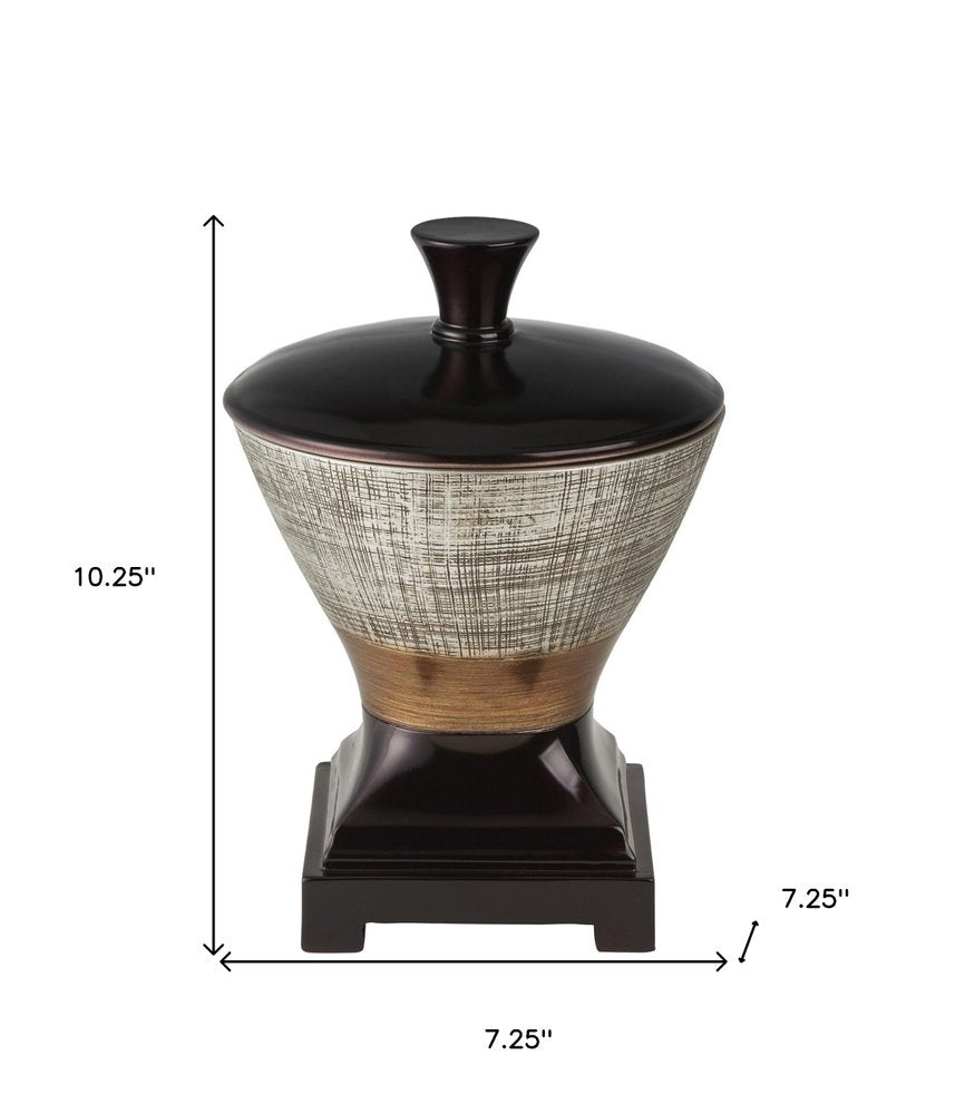 7" Espresso Gold And Silver Resin Striped Jewelry Box With Hand-Painted Designs