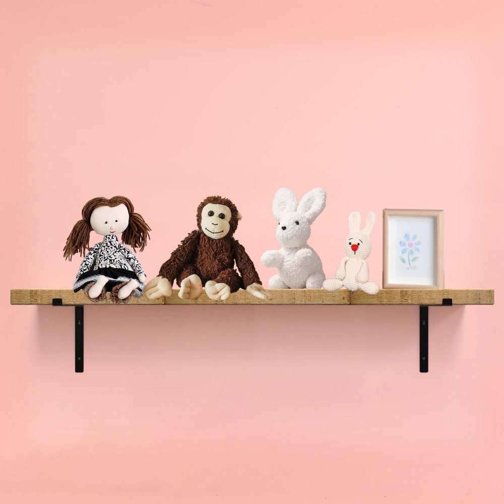 The 7-inch set of two black metal wall mounted shelf brackets is perfect for adding a touch of elegance to any space. Designed to accommodate various rooms such as the living room, bedroom, bathroom, and office, these brackets provide versatile functionality. Crafted from durable metal, they ensure a sturdy support for your shelves while showcasing a classic traditional style. The sleek black color adds a sophisticated contrast to your decor, making it a stylish choice for any home. With two pieces included, this set allows for easy installation and the creation of custom shelf arrangements to suit your needs. Enhance your interior spaces with this practical and aesthetic shelving solution. 8.25-inch h x 6.5-inch w x 0.75-inch d.