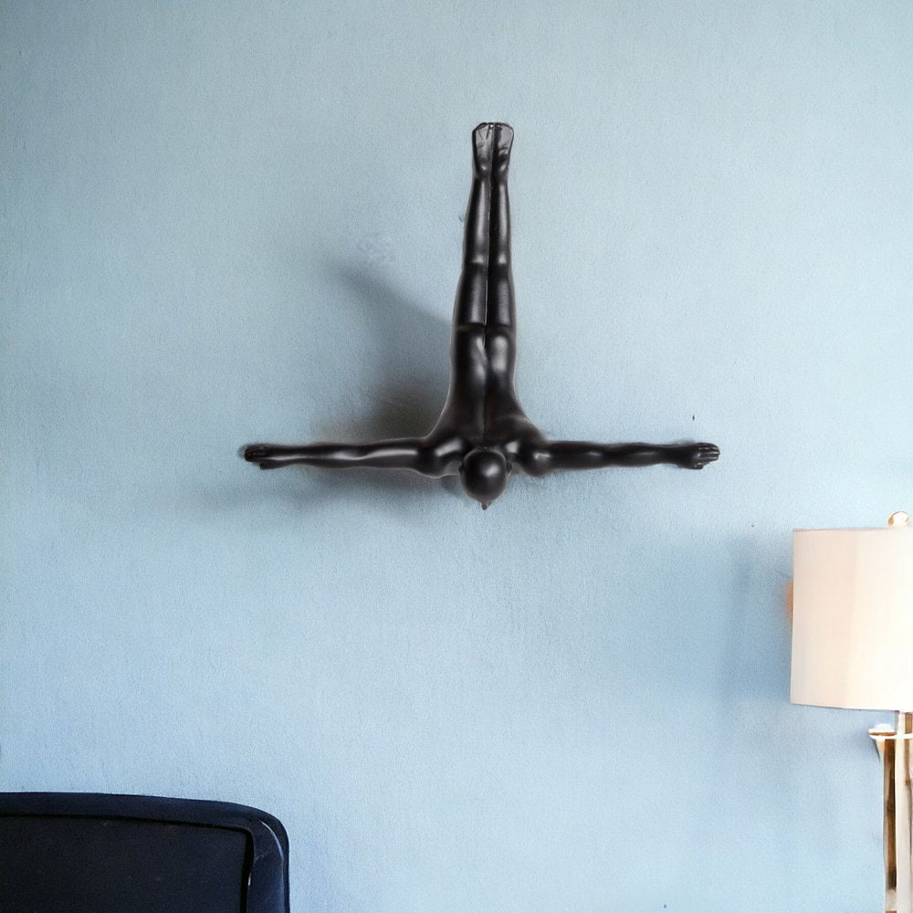 7" X 7" Black Resin Diving Man Hanging Dimensional Sculpture