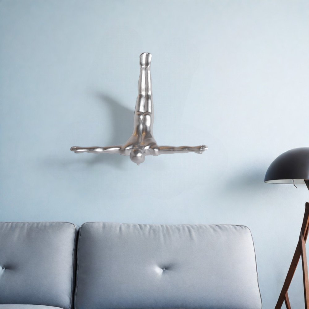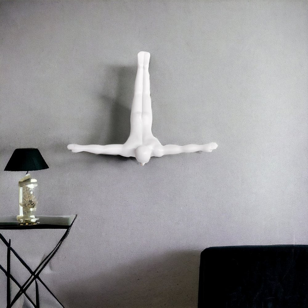 Instantly liven up your space with this art that brings color and dimension to your walls. This good looking decor will fill the empty space on your wall while adding a stylish and decorative touch. This super cool wall sculpture creates the illusion of a man diving from any surface from which he is hung. Made from durable resin, this striking 3D piece of art looks great by itself but can also be staggered with others to make a unique design collage. Start some conversation when you hang this on your wall today. 6.5-inch h x 6.5-inch w x 2.5-inch d.