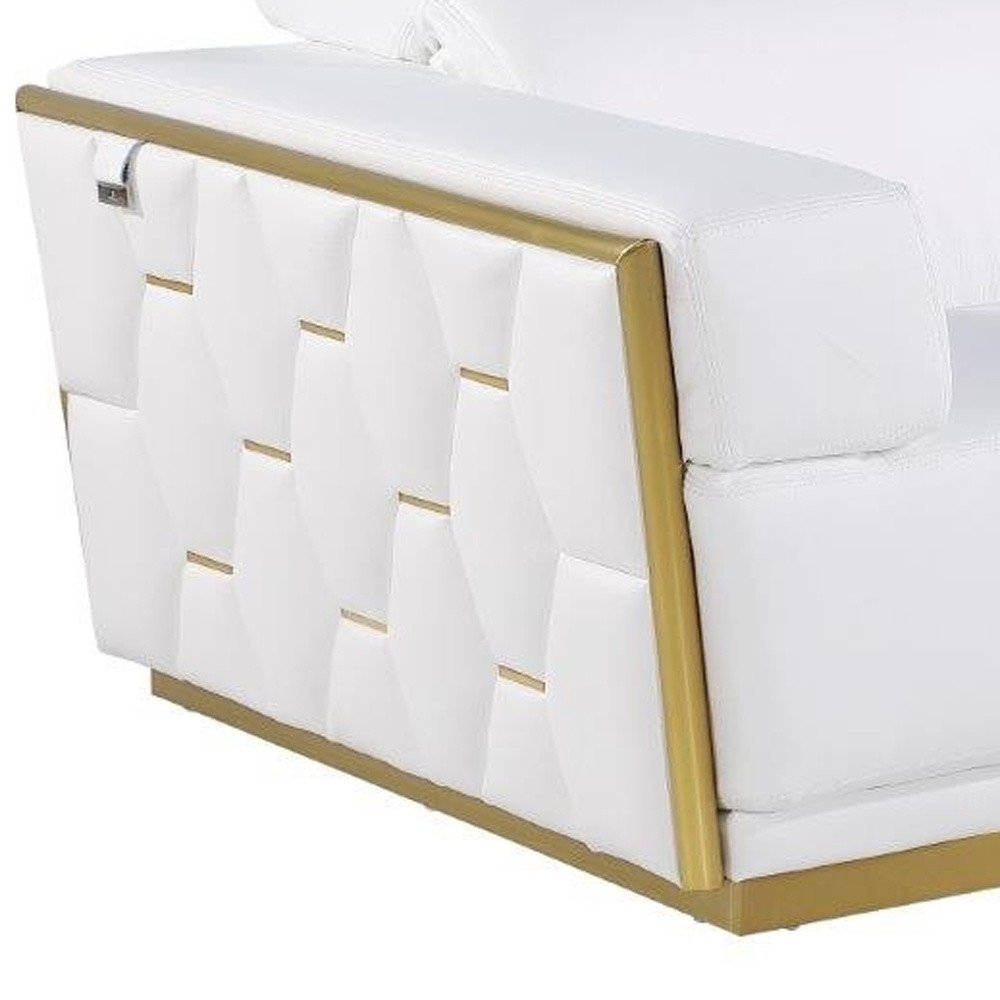 70" White And Silver Italian Leather Loveseat