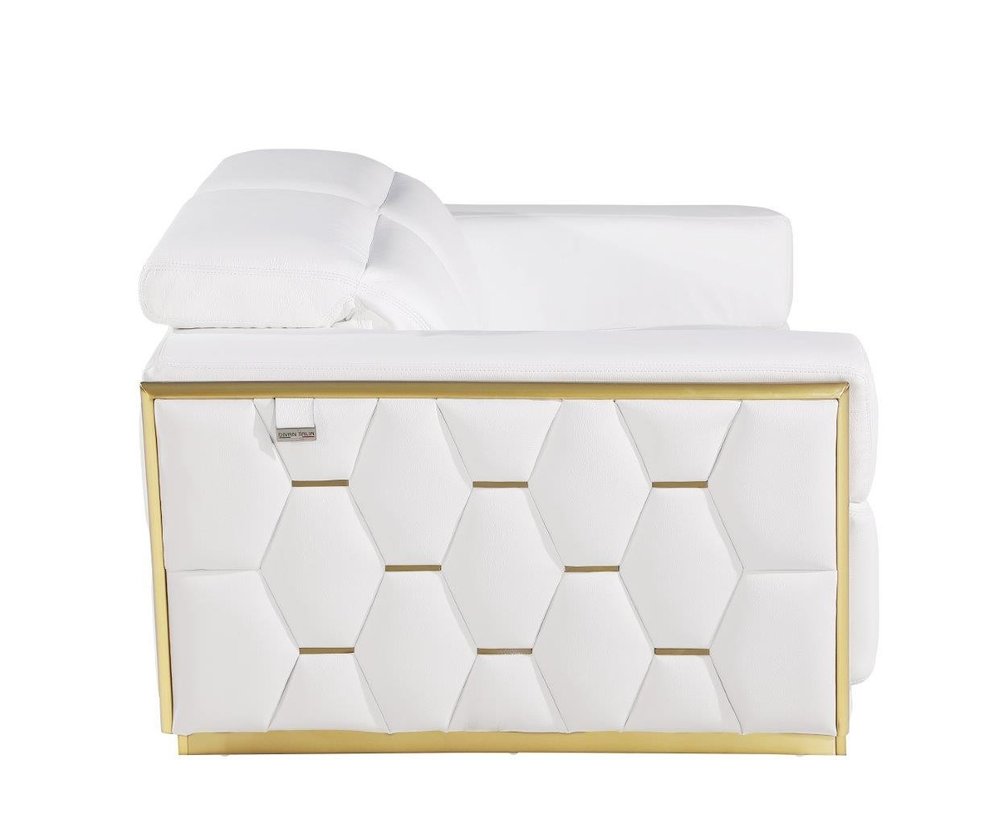 Superior construction from fabulously soft and high grade leather gives this 70-inch white and silver italian leather loveseat a leg up on the competition. The high grade premium leather used makes your lounging luxuriously comfortable and adds an elegant appeal to your space. Square arms offer a comfy place to rest and give this piece some interest and shape. Silver steel legs effortlessly elevate the room and add a touch of contemporary design. A great showpiece for your room, this sofa is a must have. 40-inch H x 70-inch W x 43-inch D