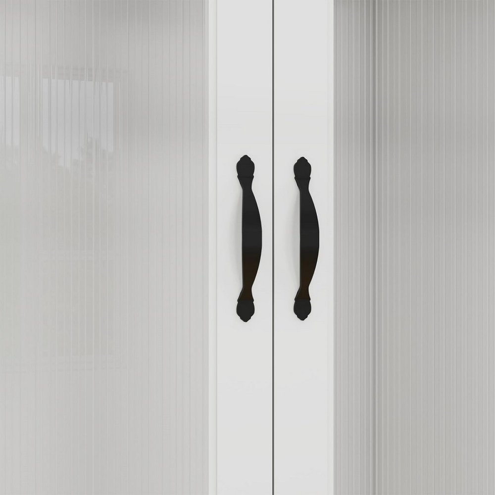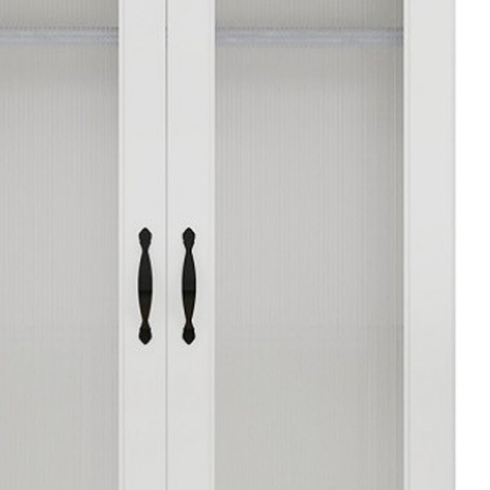 This 71-inch white wood two door two drawer combo dresser is a practical and good looking accent for your bedroom storage and organizational needs. Versatile in use, this combo dresser is equipped with both drawers and doors for all your storage needs. This dresser is made from sturdy manufactured wood that is built to last and features ribbed glass panel doors that give it style and interest. The white coloration of this piece is neutral and will blend easily with most any decor. 70.86-inch h x 31.49-inch w x 20.47-inch d.