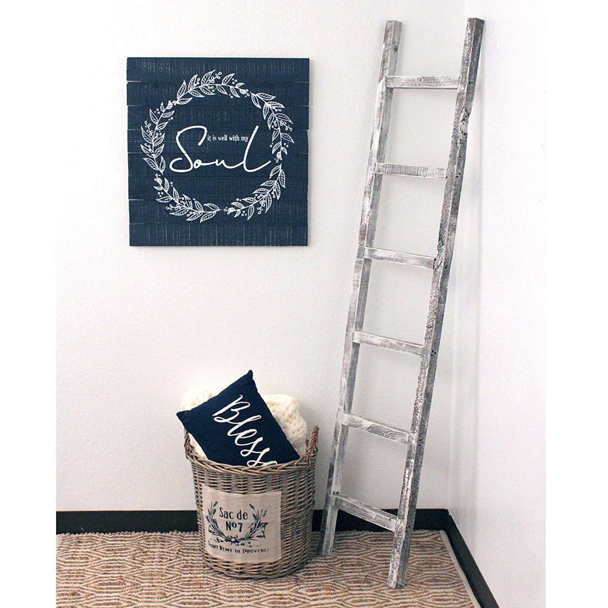 This 72-inch x 16-inch white wood hanging dimensional sculpture will add a beautiful decorative accent to your walls. With materials and a finish that is purposefully distressed, this hanging wall decor will instantly liven things up and bring color and dimension to your walls. 72-inch h x 16-inch w x 2-inch d.