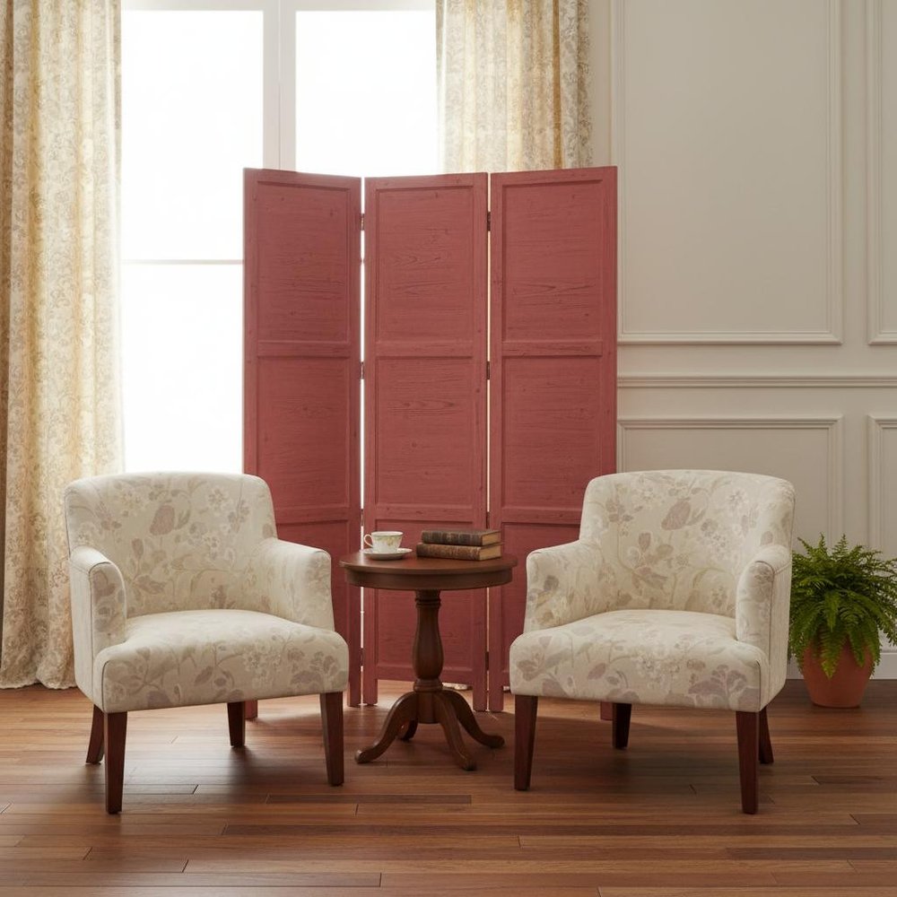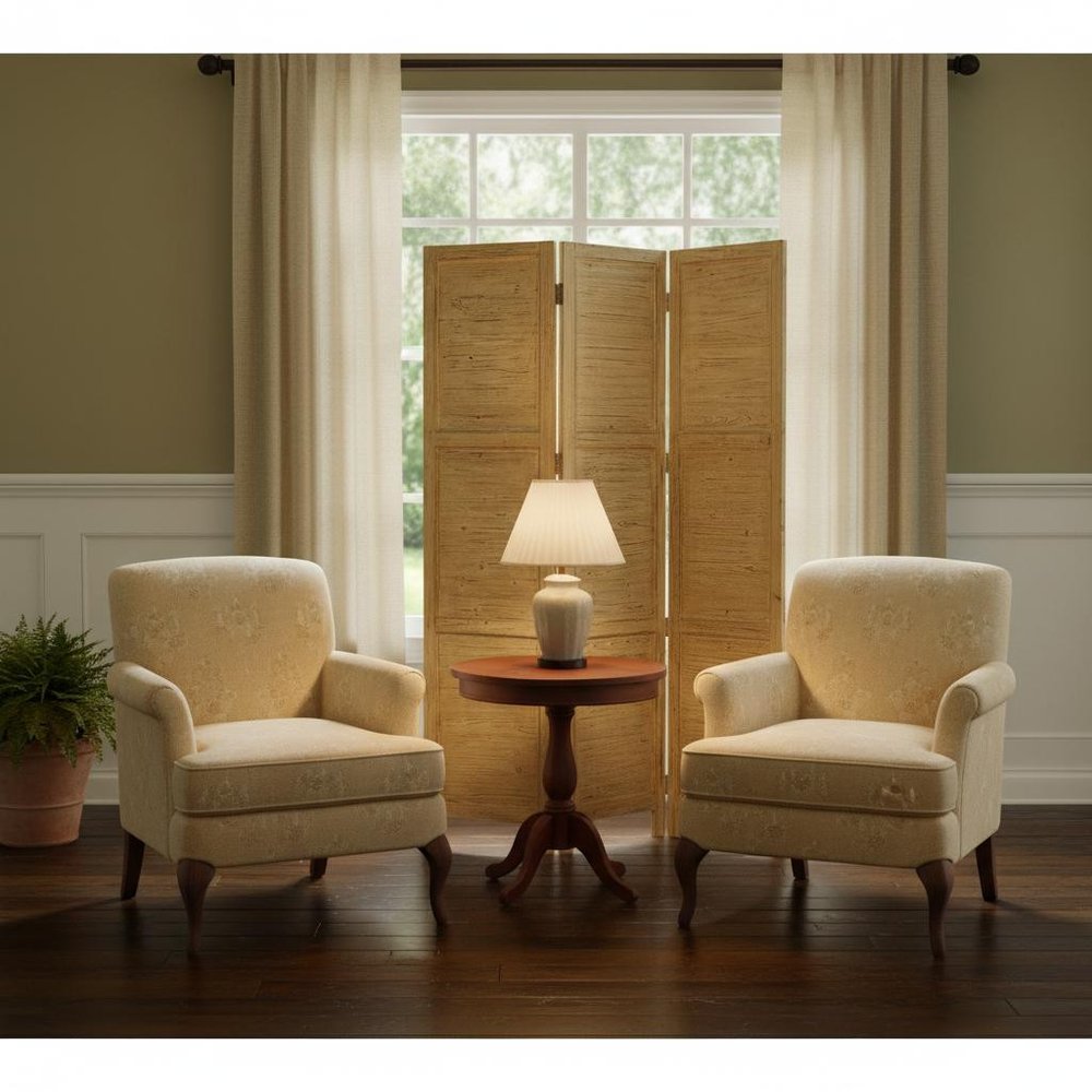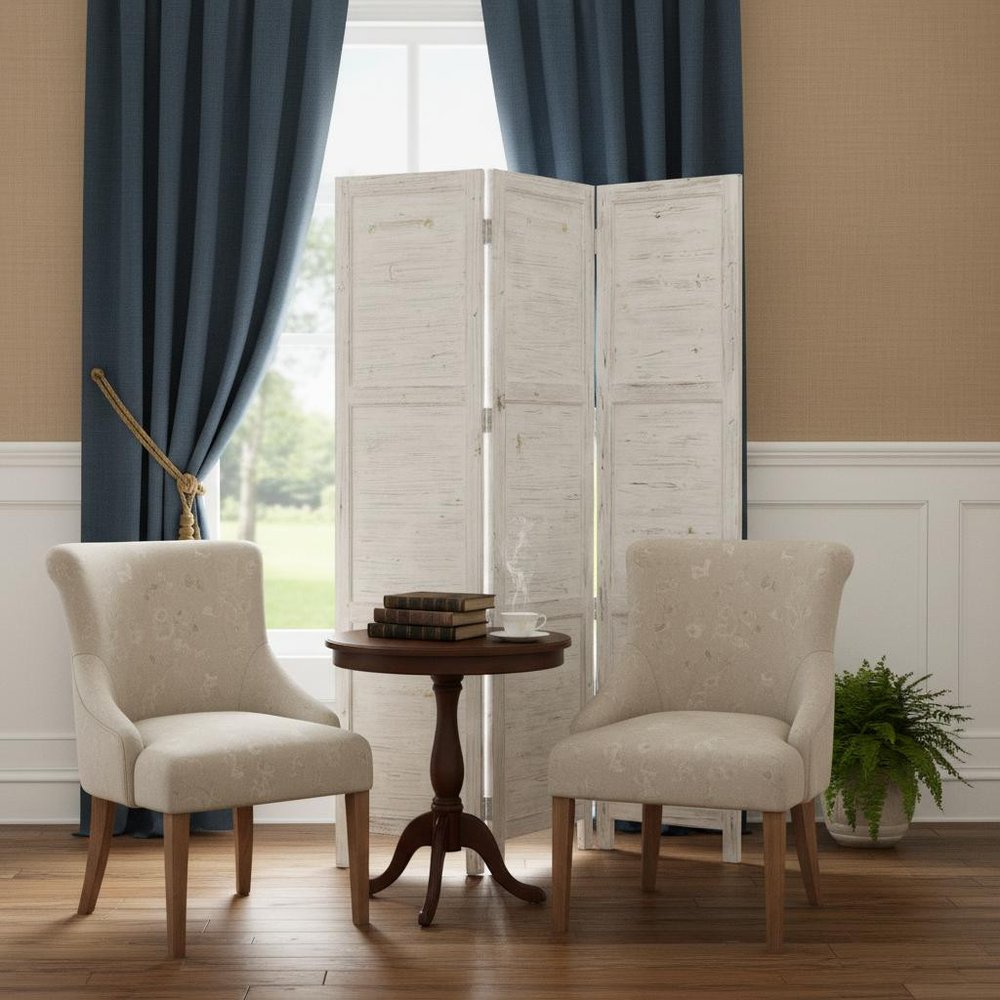 our 4 panel screen offers a creative way to carve out a space in your room without disrupting the existing elegant setting. this screen will easily serve as a temporary addition to your decor with exciting style. it features handmade floor screen with stylish vintage vanity. the overall structure is complemented with solid cedar wood frame and panels with stained washed soft green accent that brings home inspiring classic vibe. 4 panel screen solid cedar wood frame and panels stained washed soft green finished on both sides