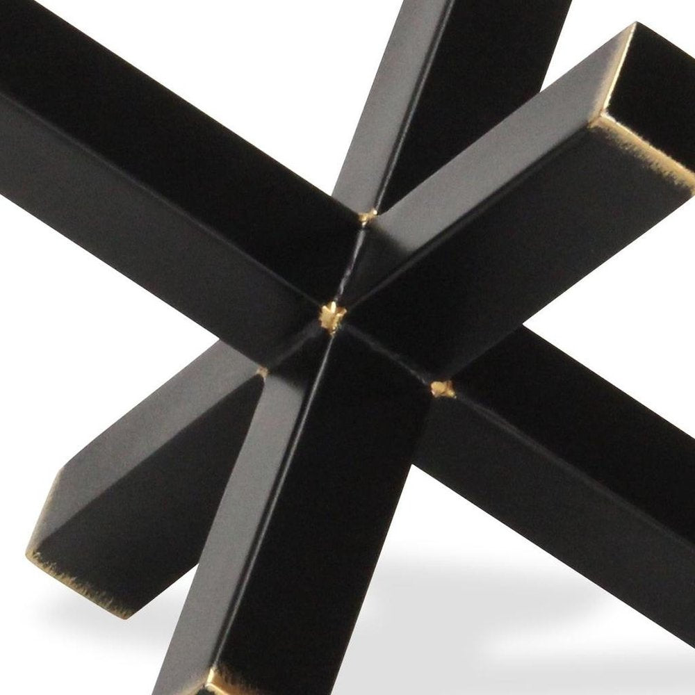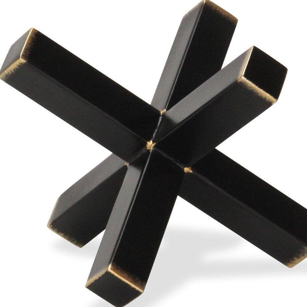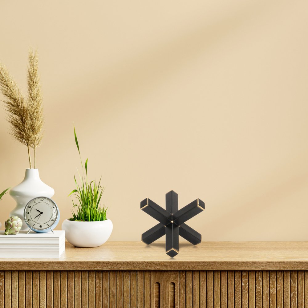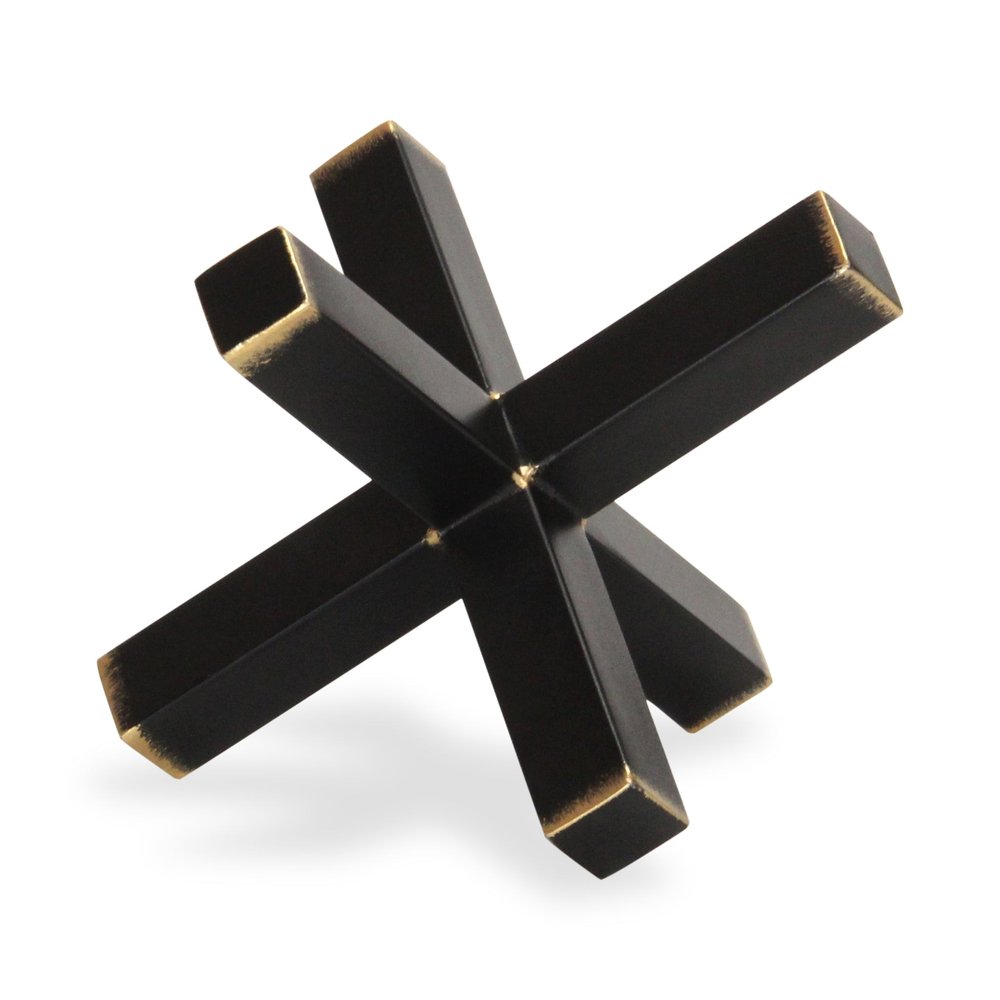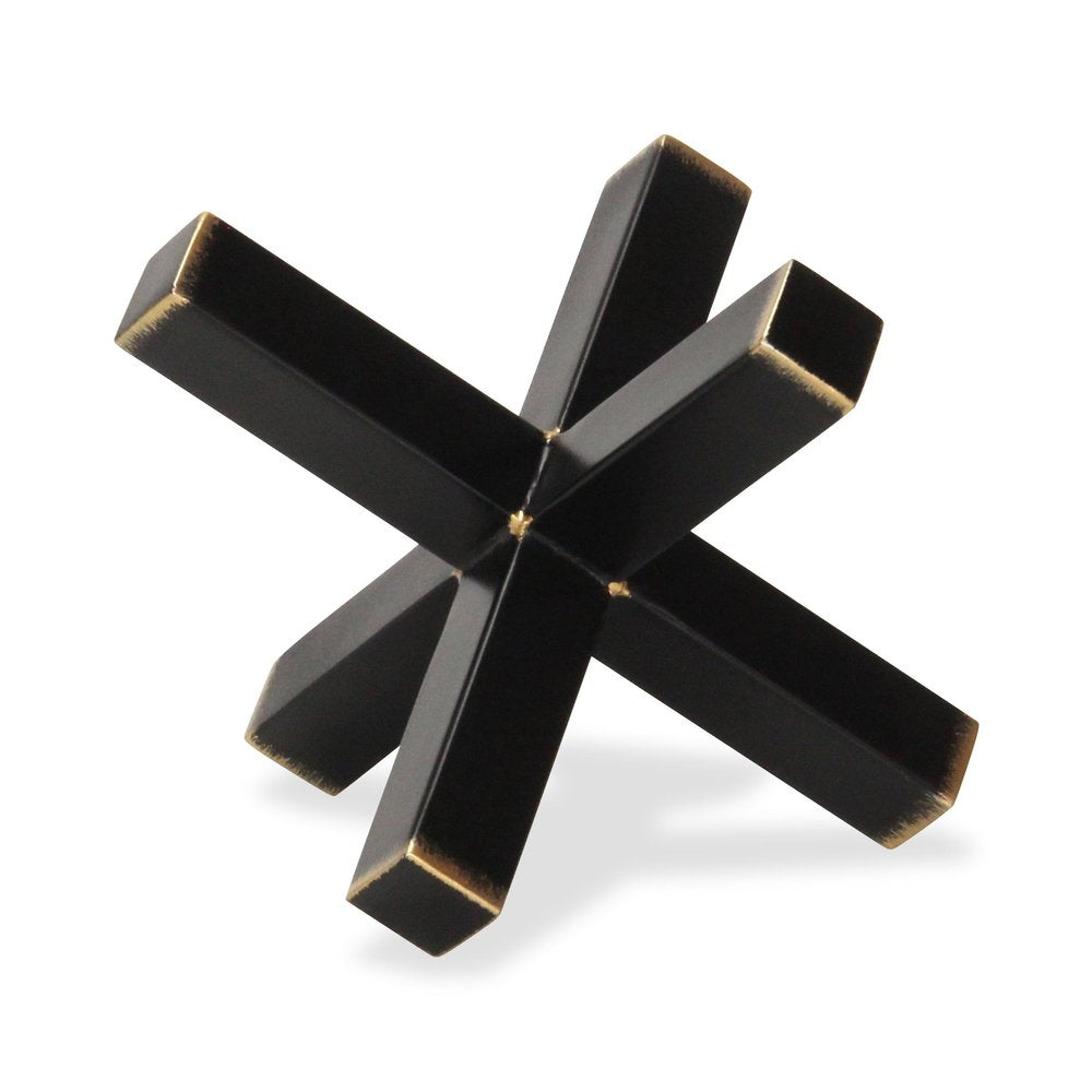 The 8-inch black metal hand painted decorative jack tabletop sculpture is the perfect decorative accessory for your home. This decorative game piece combines a touch of whimsy with modern decor. Makes a great accent for your coffee table, desk, or bookshelf. It's a perfect addition for those who love an up-to-the-minute look and feel. 8-inch h x 8-inch w x 8-inch d.