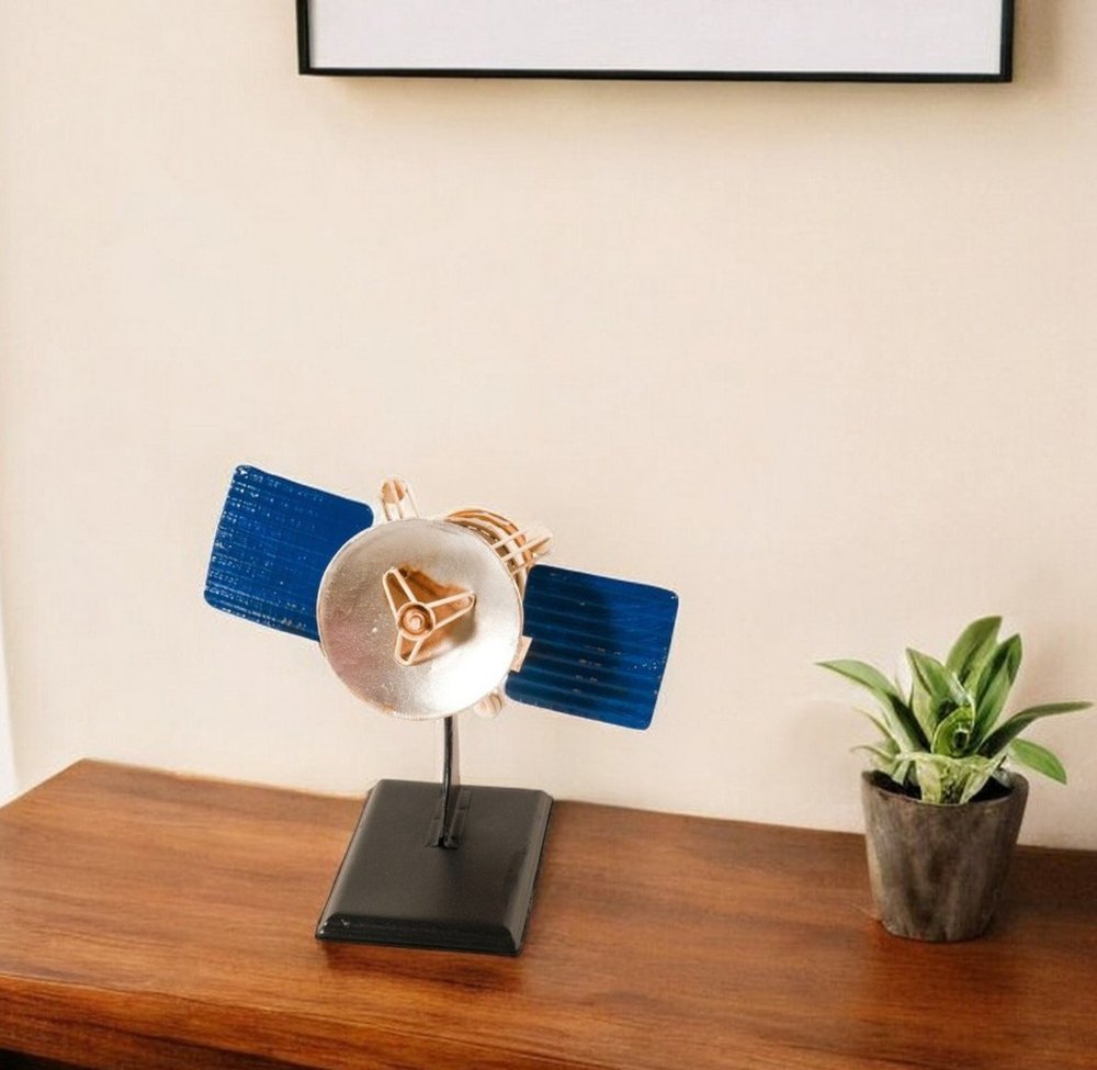 High-quality metal used in this blue and yellow sculpture is both good looking and hard wearing. This replica makes a great tabletop accent for your coffee table, desk, bookshelf, dresser or mantle. A perfect decorative addition for anyone who loves nostalgia and vintage style models and replicas. It's a perfect addition for those who love an up-to-the-minute look and feel. 8-inch h x 8.5-inch w x 7-inch d.