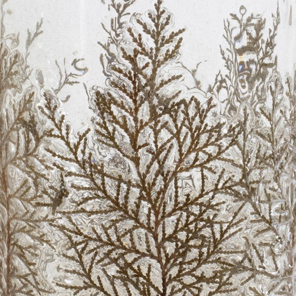 Create a warm and inviting environment in any space with this 8-inch brown and clear botanical leaf glass tabletop pillar candle holder. Add a striking element of nature to your space with this unique dried cedar branch. This candleholder is the perfect illuminating design to accent your space in style. This candleholder is a decorative accent onto its own, with or without candles. 8.00-inch h x 6.00-inch w x 6.00-inch d.