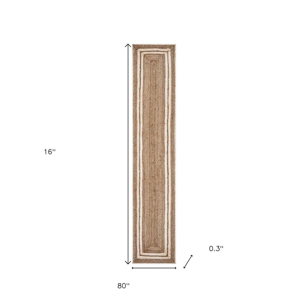 80" Natural And Cream Geometric Bordered Jute Table Runner