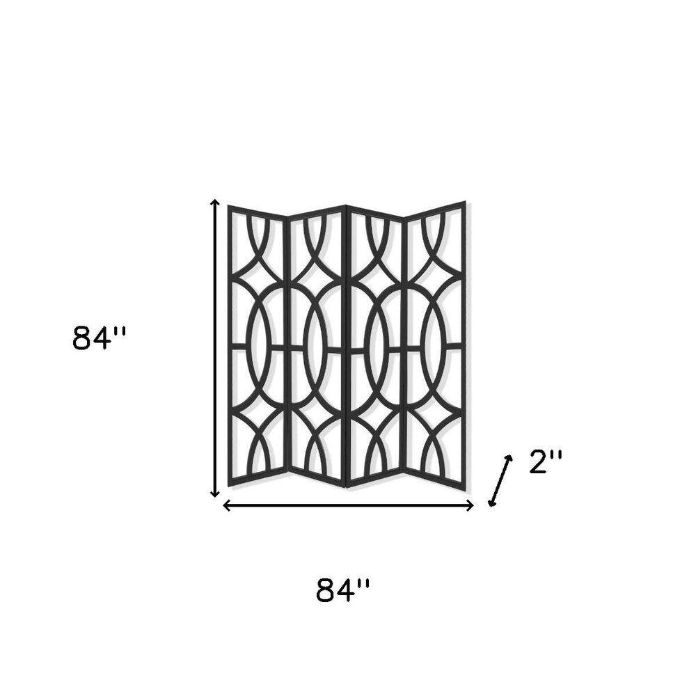 84" Black Solid Wood Folding Four Panel Screen Room Divider