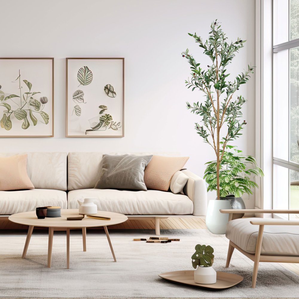 The 84-inch green olive artificial tree in a black pot brings a touch of nature indoors with its lifelike appearance. Designed for floor placement, it serves as an eye-catching centerpiece in any room. The included black pot adds a modern touch, perfectly complementing the rich green foliage. This ornamental tree with adjutable branches is ideal for those seeking the beauty of greenery without the upkeep of real plants. Enjoy the elegance and charm of an olive tree without the worries of watering or sunlight, making it a practical addition to your home decor. 84.00-inch h x 26.00-inch w x 26.00-inch d.