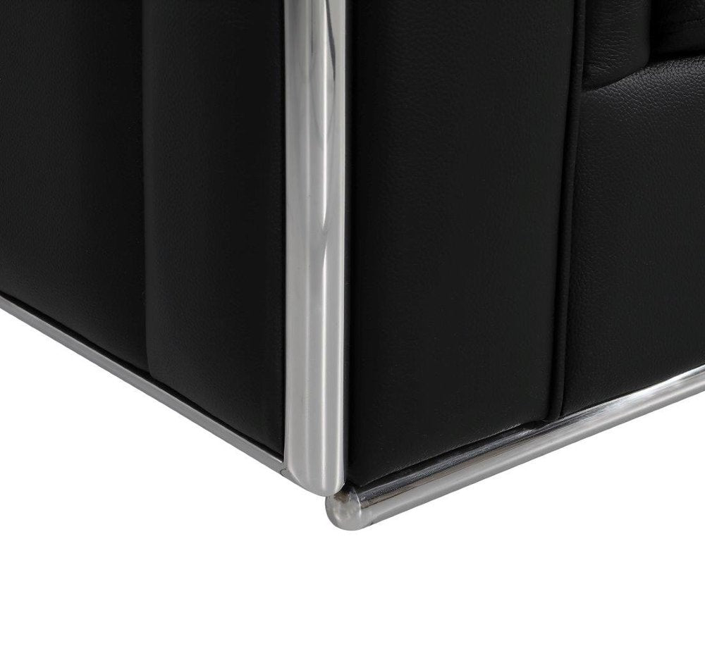 Superior construction from fabulously soft and high grade leather gives this 89-inch black italian leather sofa with silver legs a leg up on the competition. The premium leather used makes your lounging luxuriously comfortable and adds an elegant appeal to your space. Solid colors give you lots of decorative options and are easy to work into your decor scheme. Sinuous springs construction gives this piece strong support and makes it comfortable to sit even for long periods of time. Removable back cushions make this sofa easy to manage. Square arms offer a comfy place to rest. Silver stainless steel legs effortlessly elevate the room and add a touch of contemporary design. A great showpiece for your room, this sofa is a must have. 40-inch H x 89-inch W x 34-inch D