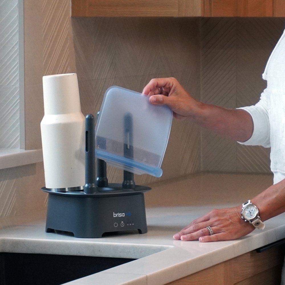 Say goodbye to soggy, cluttered countertops and hello to the future of drying. Brisa Rack is the first powered drying system for reusables and will revolutionize sustainability in your kitchen! This innovative product is a game-changer that promises to solve problems. Say hello to the future of drying and make drying … “a breeze”!