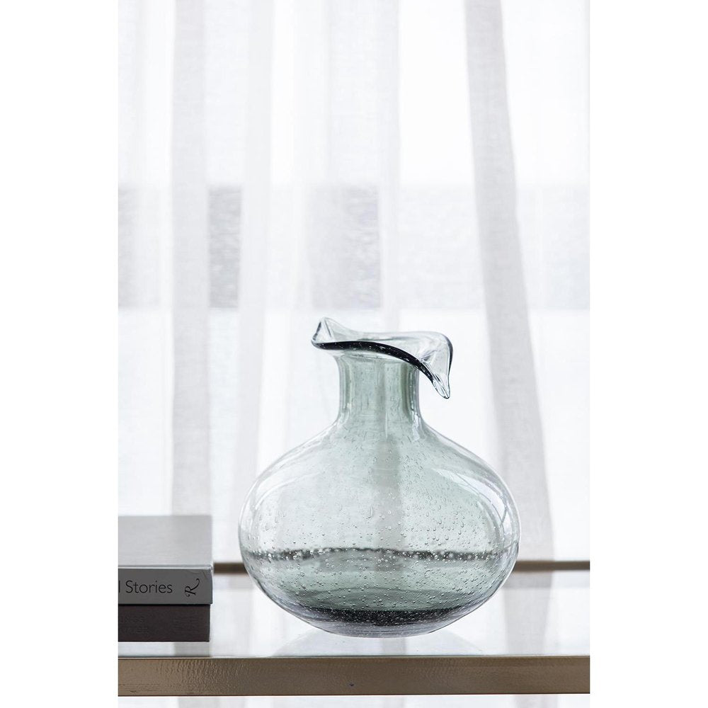 Ideal for displaying fresh or dried flowers, it effortlessly elevates your home ambiance. This round table vase showcases a modern design crafted from smoky gray bubble glass with a curved lip, adding a unique touch to your decor. The translucent texture of the bubble glass allows light to play through, creating enchanting reflections and enhancing any floral display. Perfect for a coffee table, mantelpiece, or dining setting, this vase is versatile and functional, making it an essential addition to your home decor collection. Enhance your living space with this elegant piece that combines beauty and practicality seamlessly. 8.70-inch h x 8.10-inch w x 8.10-inch d.