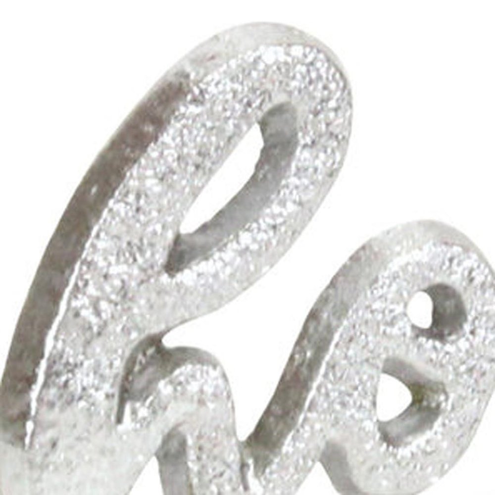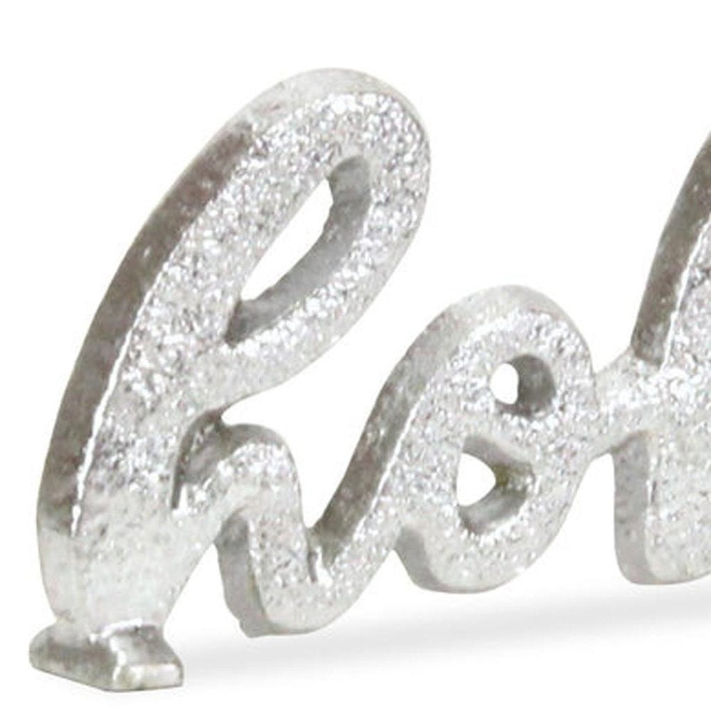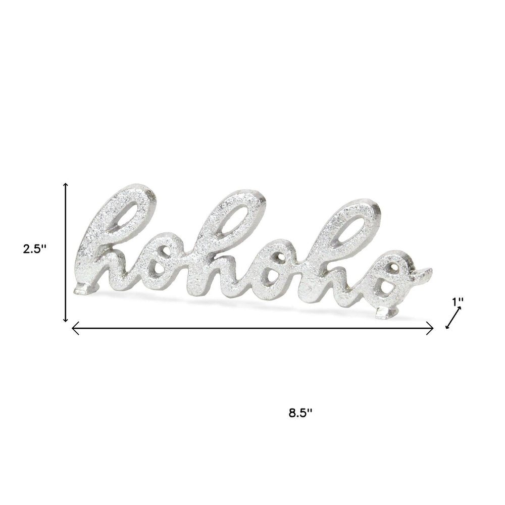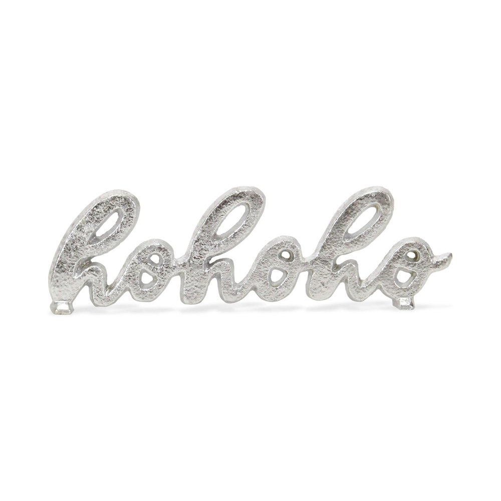 This 3-inch silver cast iron Christmas tabletop sign is the perfect way to celebrate and decorate for the holidays. Adorned with the cheerful text "hohoho," it embodies the whimsical spirit of the season. Crafted from durable cast iron with a purposefully distressed and rustic finish, it promises longevity while adding an elegant touch to your festive decor. Each piece is meticulously hand painted, ensuring a unique aesthetic that enhances its charm. This cast iron textural decor makes a wonderful Christmas gift or decoration. 2.50-inch h x 8.50-inch w x 1.00-inch d.1.00-inch d.