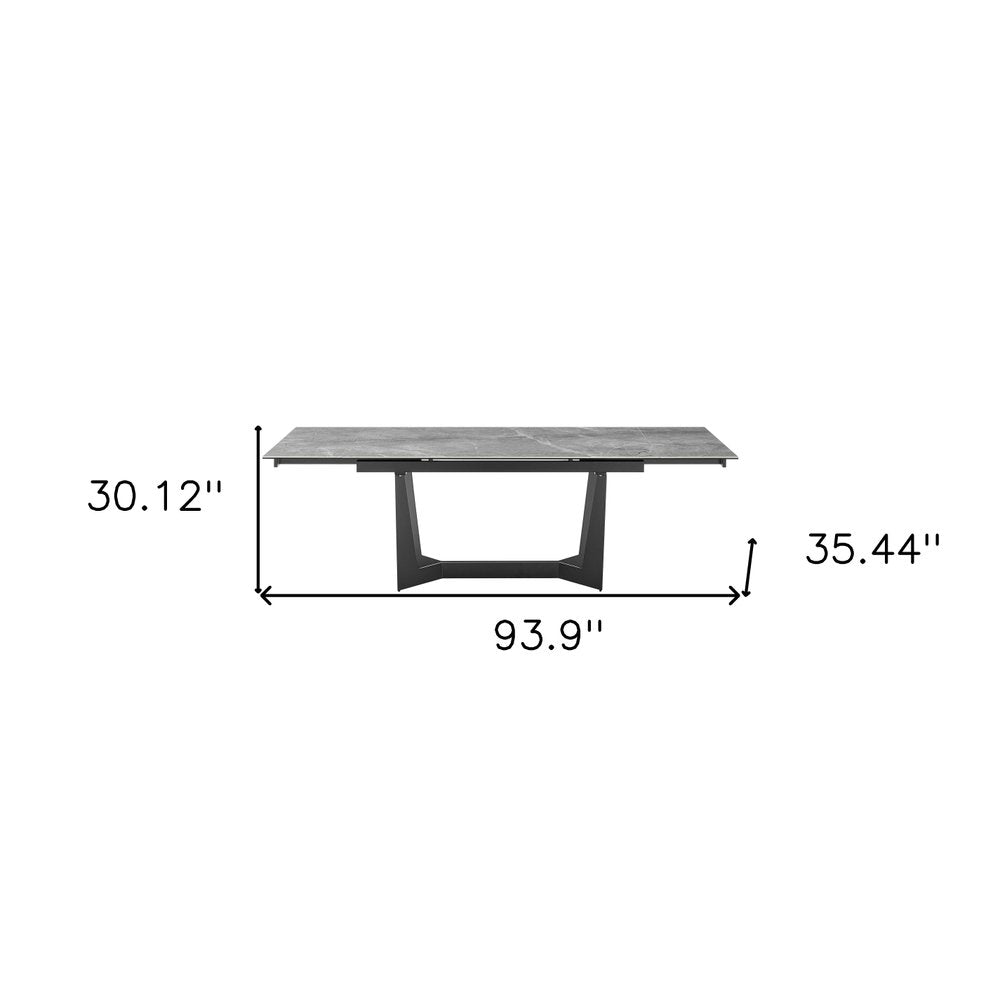 94" Gray And Black Ceramic And Steel Trestle Base Dining Table