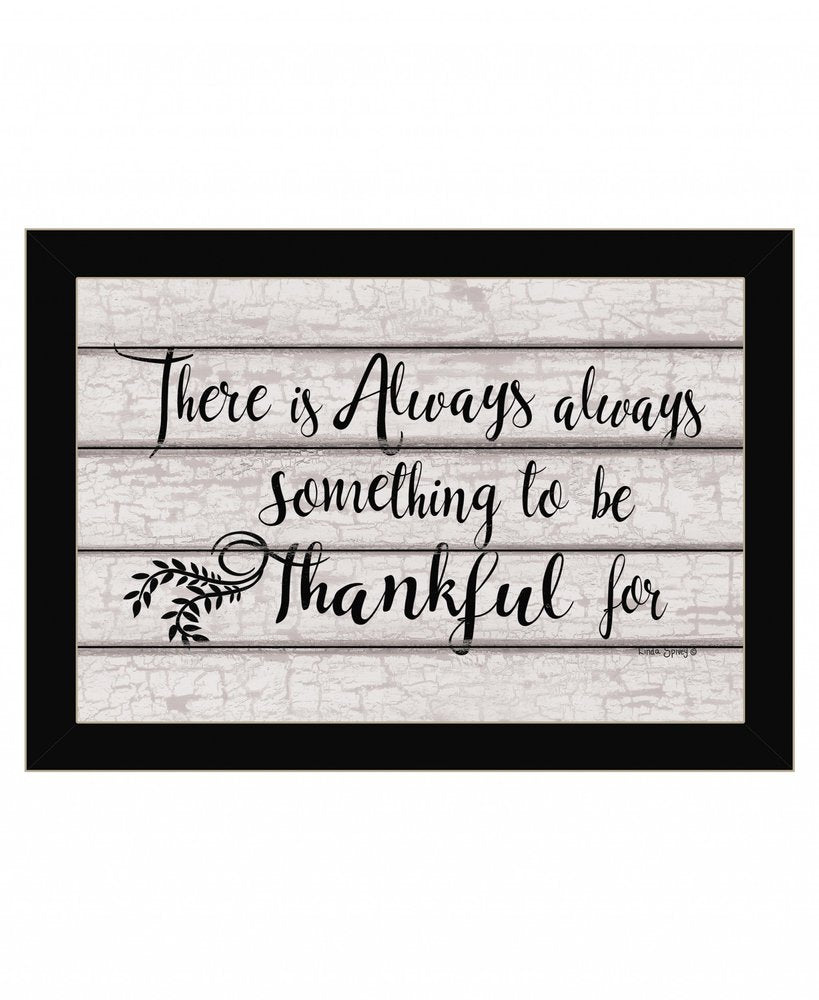 Bring some sizzle to your space with this eye-catching always thankful 1 black framed print wall art. This print is a visual artistic expression that allows you to decorate your space in style. Reproduced for you on wood, this hanging decorative accent will be a trendy and fashionable way to dress your walls in a rustic and modern farmhouse vibe. Adding this hanging wall art to your space to make your room feel more finished and attractive. Utilize this opportunity to create a focal point in the room with this fabulous wall decor option. 14-inch H x 20-inch W x 1-inch D