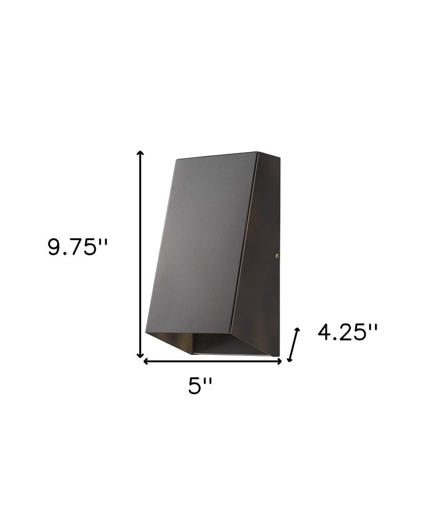 Bring in a touch of modern design to your home with this Antique Bronze Geometric Wall Sconce. This wall sconce has a very minimalist design with one straight rectangular back piece on top which there is a tapered geometric shape. This wall sconce has clean lines which are accentuated even more by the Antique Bronze finish. Use it indoors in your entryway, your bathroom, or your hallways. Or you can use it outside near your front door, as garden lighting, or even as shed lighting. Use it with similar lights or as a stand alone piece. 9.75" H x 5" W x 4.25" D