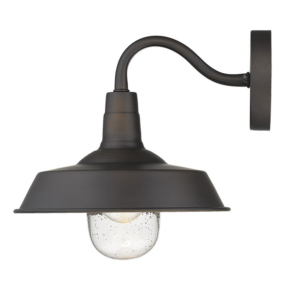 With this Antique Bronze Shallow Plate Shape Wall Light you can add more brightness and style to any space inside or outside of your home. The wall bracket has a simple circular design out of which there is a curved rod coming out. This rod attaches to the main light shape. The main light shape has a thin cylindrical top and a shallow plate shaped body. The light globe hangs below the shade and adds a touch of traditional design to the overall look. The wall bracket, rod and main light are all in the same antique bronze finish. The contrast of the colors and finishes will look great in any space and elevate the feel and look of it. 10.5" H x 10.25" W x 12" D