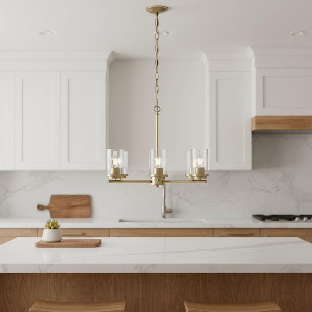 Illuminate your home in style with this antiqued brass and clear chandelier five light iron ceiling light with clear shades. This light will require hardwiring installation. Get creative and change up the look of any room from hallway, to closet, to office or bedroom with this gorgeous hanging chandelier light fixture. 64.00-inch h x 20.50-inch w x 20.50-inch d.