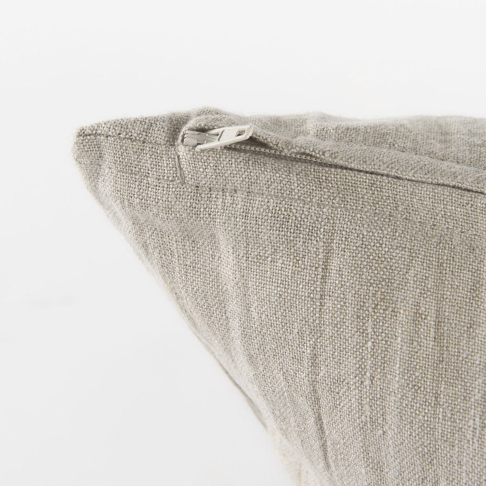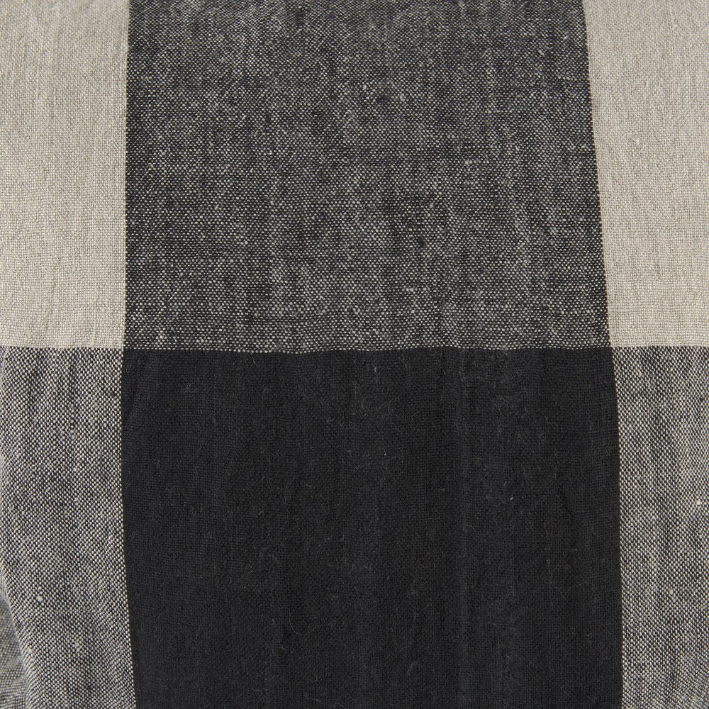 With this Beige and Black Plaid Pattern Throw Pillow Cover you can add the perfect finishing touch to your couch. This Throw Pillow Cover is made highly durable and soft linen material that provides comfort beyond measure. This Throw Pillow Cover has a beige background with one black line running horizontally and vertically. These black lines have a lighter color on the sides while in the middle, where they intersect, they have a darker color. The back has a zip closure that ensures your cushion stays in there securely. You can easily clean and wash this Throw Pillow Cover without any damage or fading of the colors. The neutral color palette will look great on top of any couch, bed or chair you have and go with any interior style you have in your home. 18" H x 18" W x 1" D