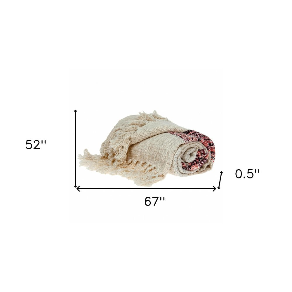 Lightweight and cozy the Beige and Multicolored Shades of Pink Strips Woven Handloom Throw Blanket offers comfort with it's chic design. This all cotton beauty makes a great addition to your existing décor whether you wish to elevate your space by just throwing it over your sofa or wrapping yourself in it's high quality super soft material. This versatile throw has a natural sense of style in it's rich tones that undoubtedly accentuates your home. 67" x 52" x 0.5"