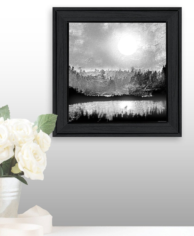 Bring some sizzle to your space with this eye-catching big moon lake black framed print wall art. This print is a visual artistic expression that allows you to decorate your space in style. Reproduced for you on wood, this hanging decorative accent will be a trendy and fashionable way to dress your walls in a rustic and modern farmhouse vibe. Adding this hanging wall art to your space to make your room feel more finished and attractive. Utilize this opportunity to create a focal point in the room with this fabulous wall decor option. 15-inch H x 15-inch W x 1-inch D