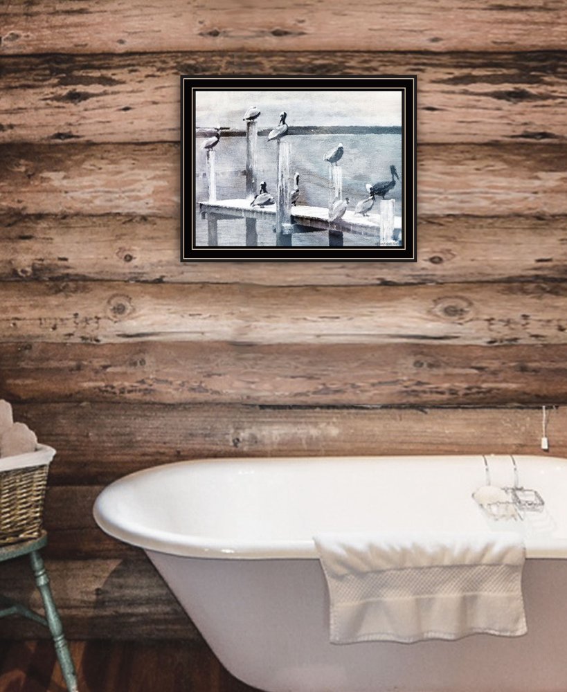 Bring some sizzle to your space with this eye-catching birds on the pier black framed print wall art. This print is a visual artistic expression that allows you to decorate your space in style. Reproduced for you on wood, this hanging decorative accent will be a trendy and fashionable way to dress your walls in a rustic and modern farmhouse vibe. Hang on your wall to add some up to date fashion and decoration. Utilize this opportunity to create a focal point in the room with this fabulous wall decor option. 14-inch H x 18-inch W x 1-inch D