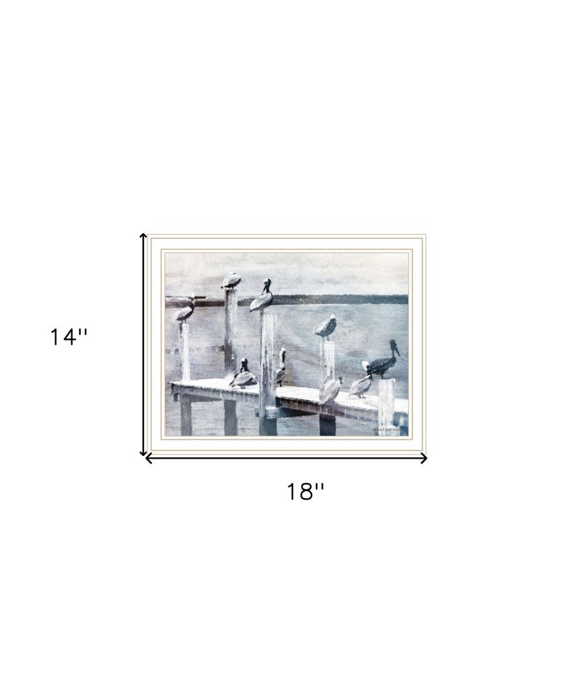 Bring some sizzle to your space with this eye-catching birds on the pier white framed print wall art. This print is a visual artistic expression that allows you to decorate your space in style. Reproduced for you on wood, this hanging decorative accent will be a trendy and fashionable way to dress your walls in a rustic and modern farmhouse vibe. Hang on your wall to add some up to date fashion and decoration. Utilize this opportunity to create a focal point in the room with this fabulous wall decor option. 14-inch H x 18-inch W x 1-inch D