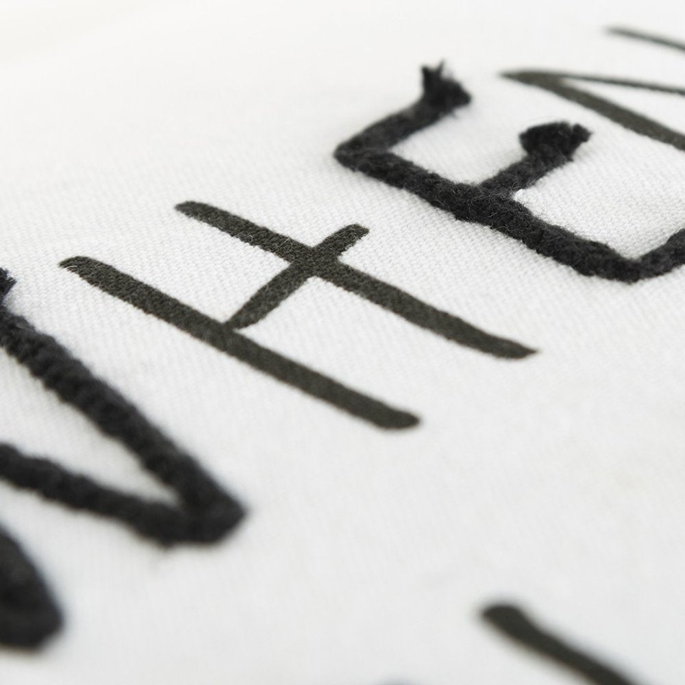 Leave the stress of the day away and take a nap on this Black and White Take A Nap Throw Pillow. The pillow sports a comforting sentiment that says ‘When All Else Fails Take A Nap’ to motivate you to take a rest and start things over when you fail. The black lettering is detailed with embroidered fringe ends to add texture and dimension to the pillow while the white background creates a striking contrast. This pillow is crafted using cotton duck fabric and frames with a self-flange for a clean and seamless finish. The same cotton fabric is featured on the back with a hidden zipper closure for convenience. Add personality to your modern home with this thoughtful decorative pillow flaunted in the room. 20” x 20” x 6.25”